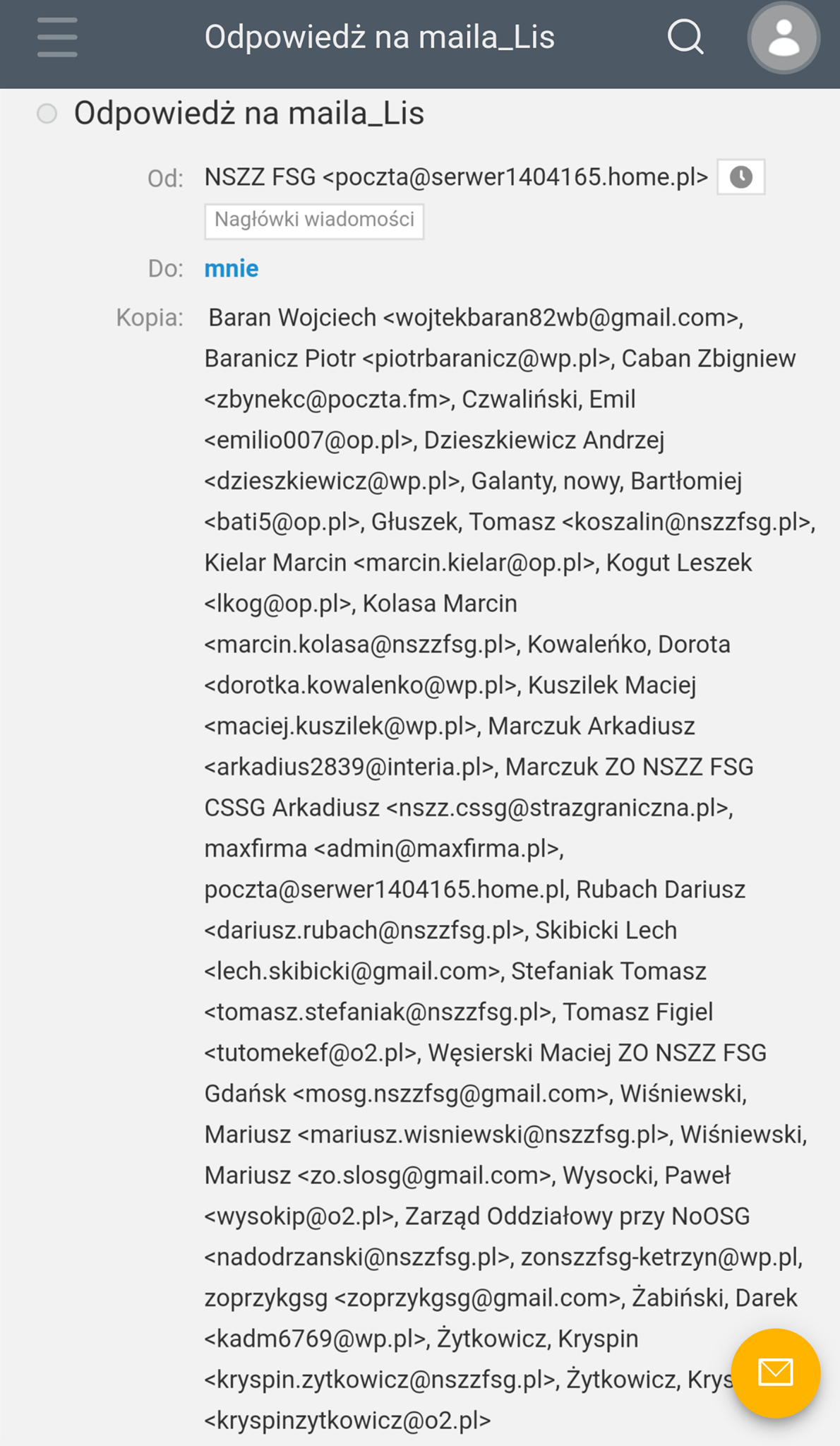 Czy ktoś z nadwiślańskich związkowców uczestniczył w jakiejkolwiek formie posiedzeń Pańskiego Zarządu, nie ma żadnego znaczenia dla faktów, które jest Pan zobowiązany transparentnie podawać do wiadomości publicznej, korzystając z dostępnych środków elektronicznych. Podaję przykłady tych środków: 1) poczta elektroniczna, którą na bieżąco można rozesłać wszelkie uzgodnienia podjęte w toku zebrań; 2) profil Zarządu Głównego na portalu społecznościowym Facebook, tak radośnie wykorzystany przez Pana podwładnych do gimnazjalnej zabawy w docinki personalne; 3) strona www, świetne narzędzie dla rzetelnych związkowców, którzy z poczucia przyzwoitości szczegółowo zdają sprawę ze wszystkich swoich działań i podejmowanych decyzji.
