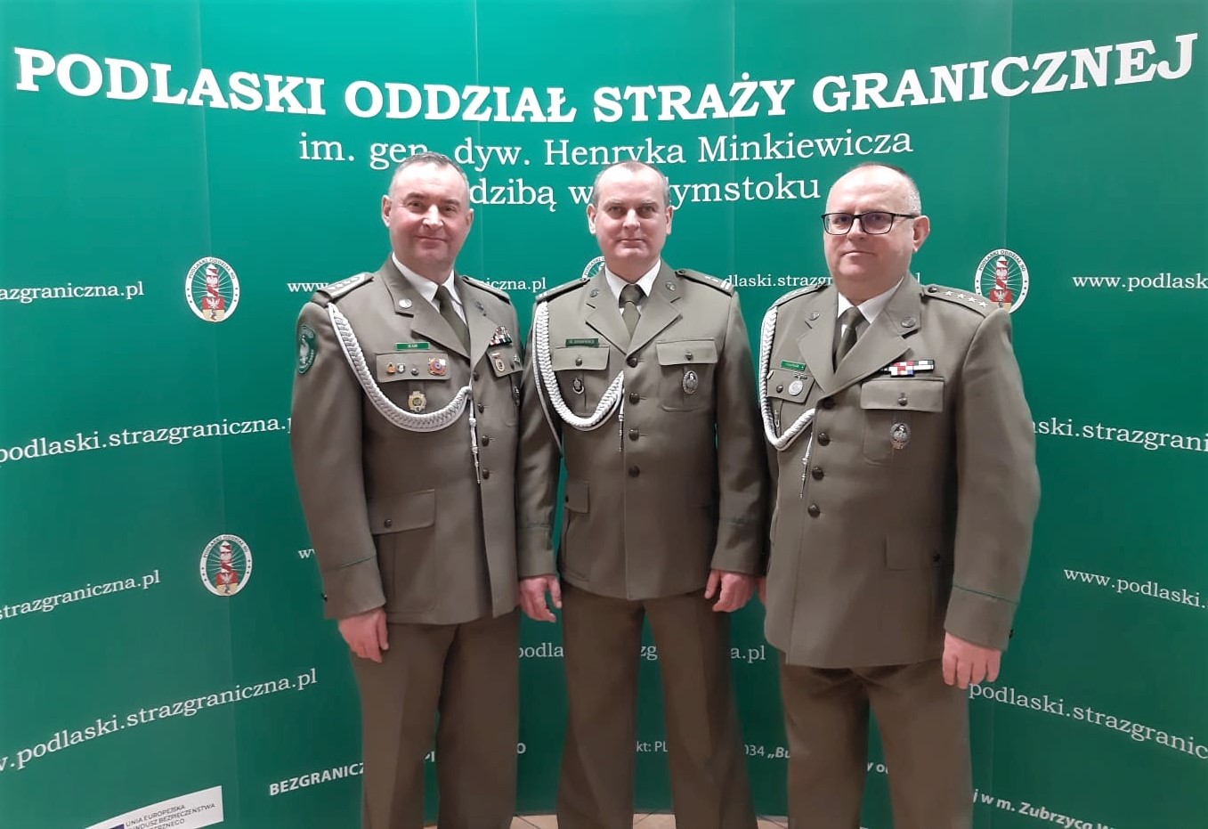 W tym również dniu odbyło się uroczyste pożegnanie ze służbą Komendanta Placówki SG w Białowieży ppłk. SG Marka Ziniewicza oraz Komendanta Placówki SG w Płaskiej ppłk. SG Andrzeja Mielziuka.