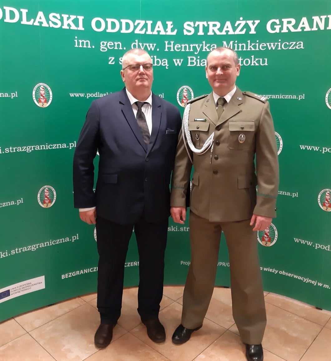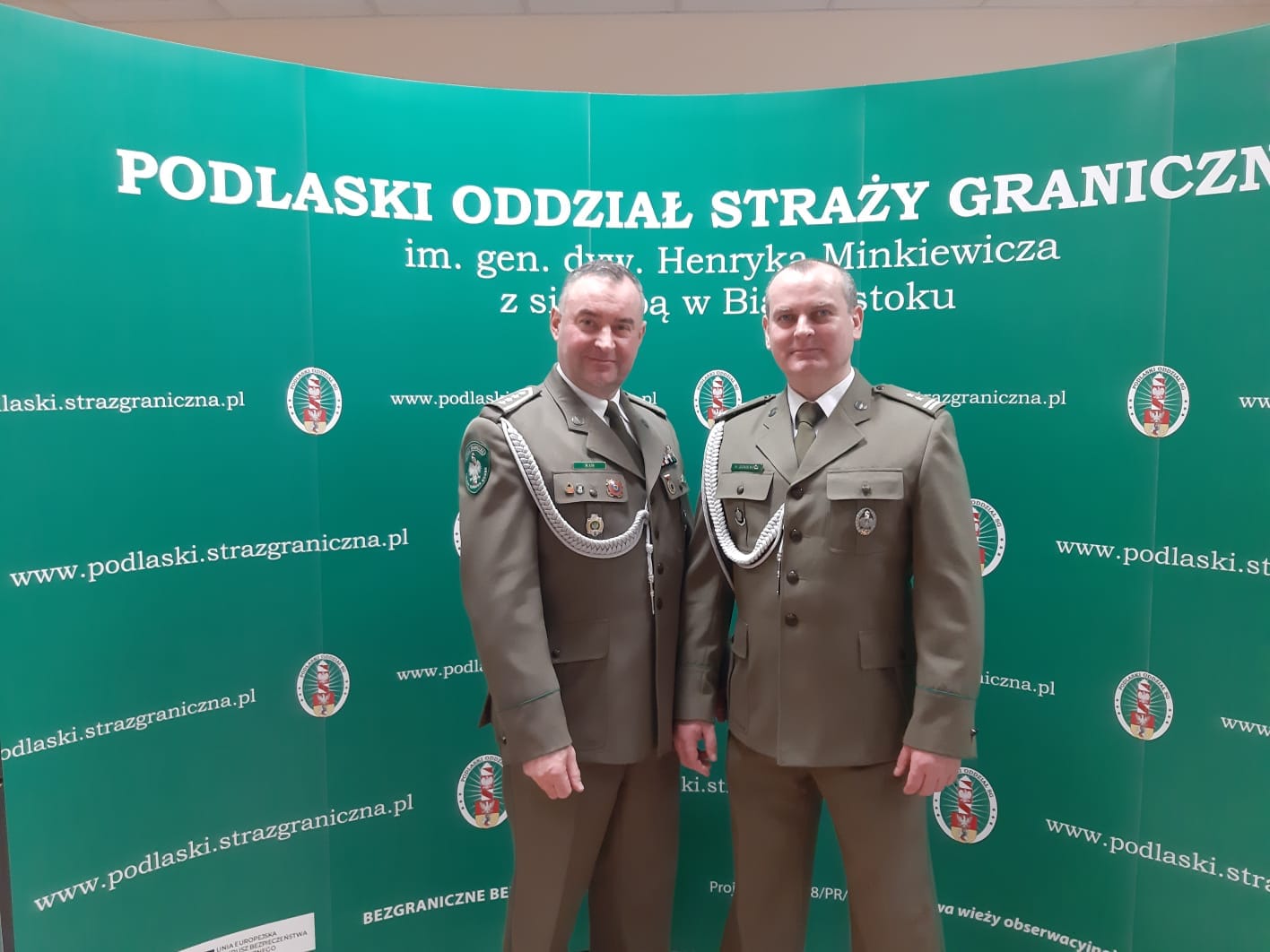 W tym również dniu odbyło się uroczyste pożegnanie ze służbą Komendanta Placówki SG w Białowieży ppłk. SG Marka Ziniewicza oraz Komendanta Placówki SG w Płaskiej ppłk. SG Andrzeja Mielziuka.