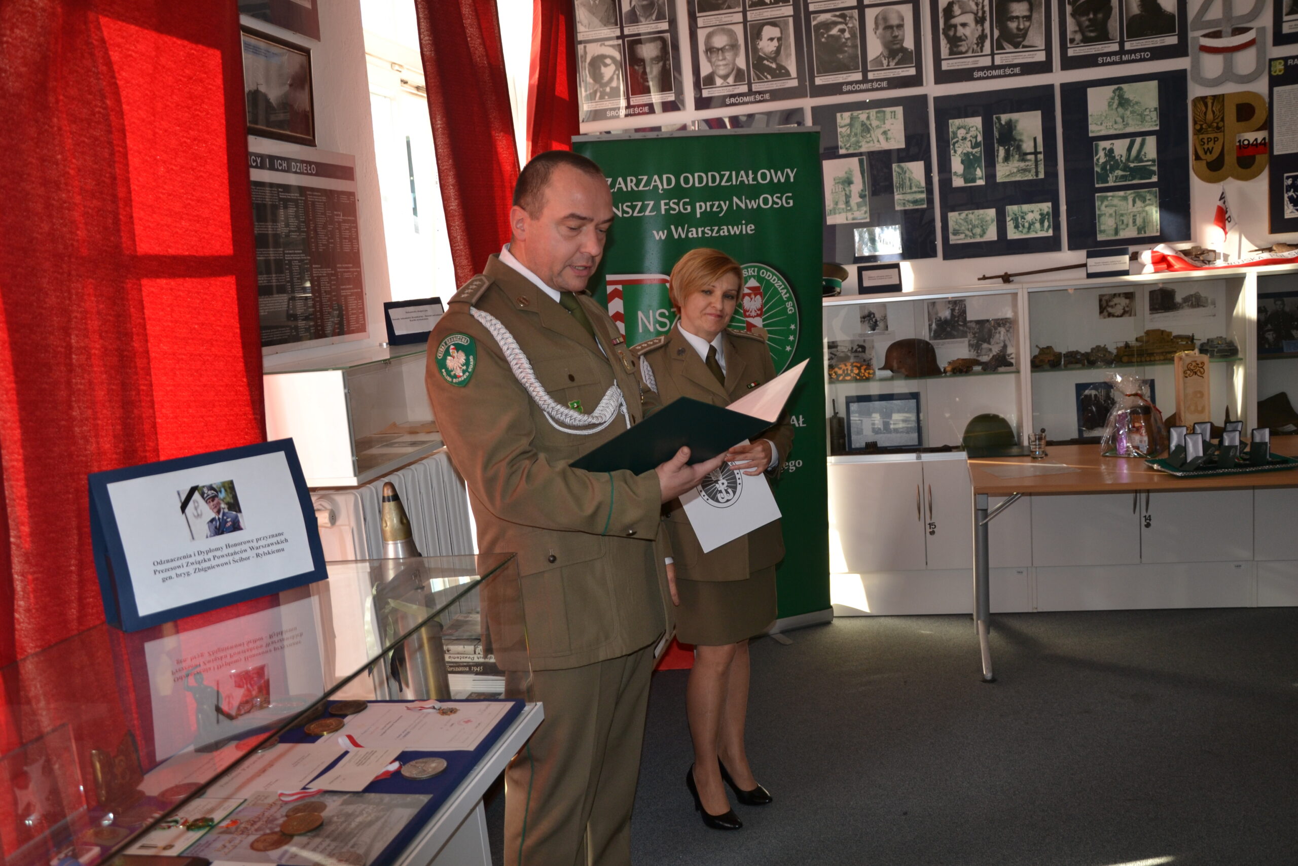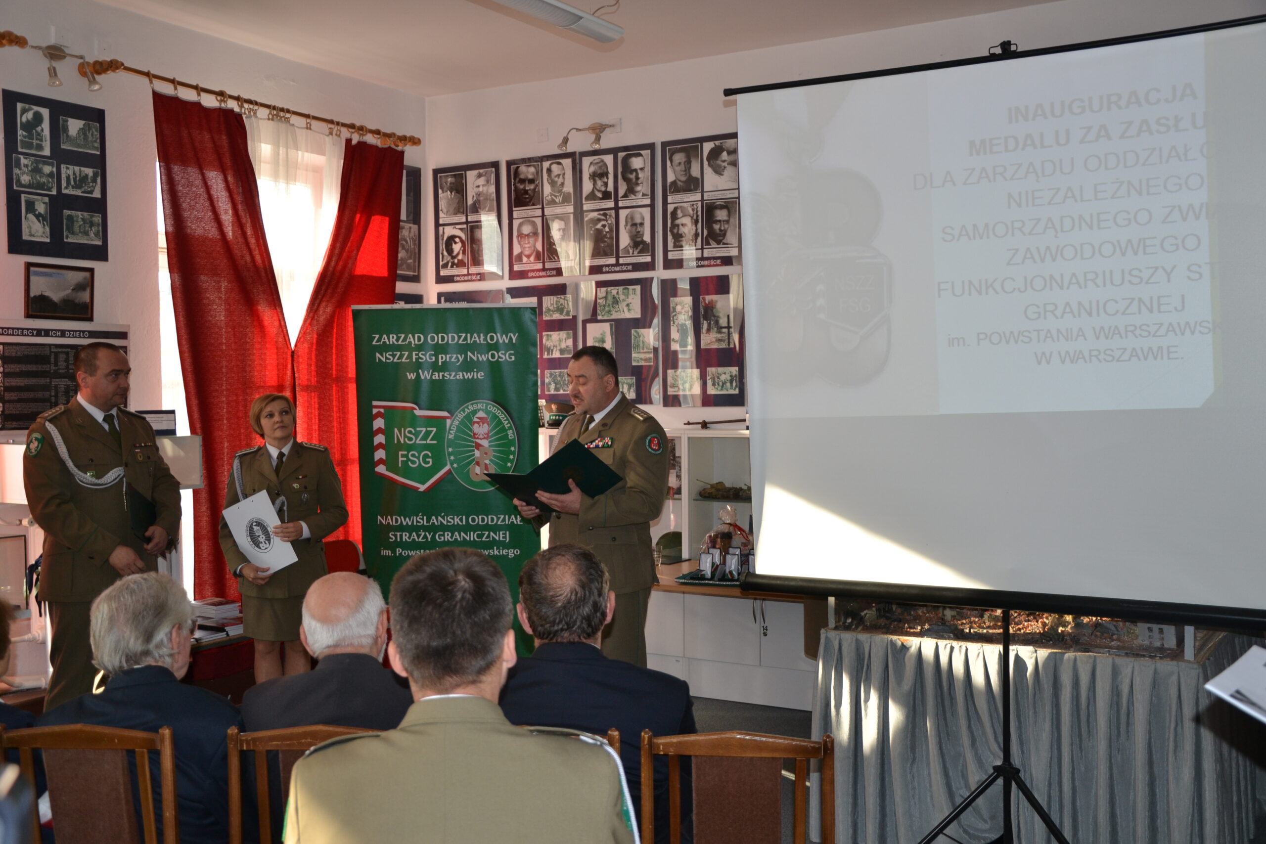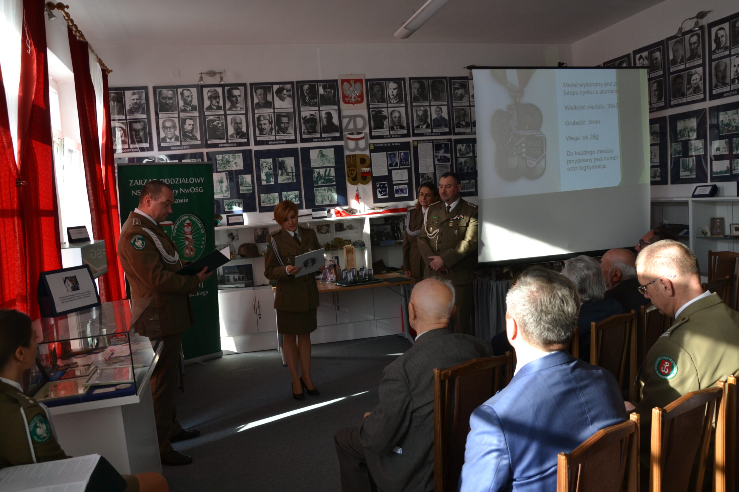 8 listopada br. w siedzibie Związku Powstańców Warszawskich z okazji obchodów 100-lecia odzyskania przez Polskę niepodległości, odbyła się uroczysta inauguracja medalu „ Za zasługi dla ZO NSZZ FSG przy NwOSG”. Organizatorem uroczystości był Zarząd Oddziałowy NSZZ FSG przy NwOSG. Oficjalnego otwarcia oraz przywitania gości dokonał Przewodniczący Robert Lis. Gośćmi honorowymi uroczystości byli Powstańcy Warszawscy. W czasie przemówienia Przewodniczący zwrócił się do gości i podziękował za przychylność dla Zarządu Oddziałowego, czego świadectwem była zgoda na użycie znaku „Polski Walczącej” na medalu oraz za dotychczasową współpracę. Po przemówieniu i prezentacji medalu, nastąpiło odczytanie treści uchwały Kapituły oraz udekorowanie osób wyróżnionych medalem „ Za zasługi dla ZO NSZZ FSG przy NwOSG”. Medale zostały przyznane: Pani Halinie Jędrzejewskiej, Pani Jolancie Kolczyńskiej, Pani Wacławie Kasprzak, Panu Zbigniewowi Galperynowi, Panu Eugeniuszowi Tyrajskiemu, Panu Jerzemu Substykowi, Panu Leszkowi Żukowskiemu, Panu Leonowi Etwertowi, Panu Maciejowi Jarosińskiemu, Panu Andrzejowi Rytwińskiemu. Na zakończenie uroczystości Przewodniczący Robert Lis w imieniu Zarządu Oddziałowego wręczył kwiaty Pani Halinie Jędrzejewskiej z okazji urodzin.