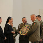Przewodniczący Robert Lis podziękował księżom za odprawienie mszy, wręczając ryngrafy Straży Granicznej z wizerunkiem Matki Bożej Częstochowskiej. Następnie wspólnie z gen. Lutyńskim przekazał na ręce Siostry Prowincjalnej i Siostry Przełożonej ikonę, wykonaną przez p. Bogusława Osnowicza, przedstawiającą wizerunek Matki Bożej Po Trzykroć Przedziwnej, wpisany w odznakę Straży Granicznej. Siostra Michalina, Przełożona Zgromadzenia, podarowała jubileuszową, specjalnie ręcznie wykonaną, świecę z wizerunkiem Patronki.