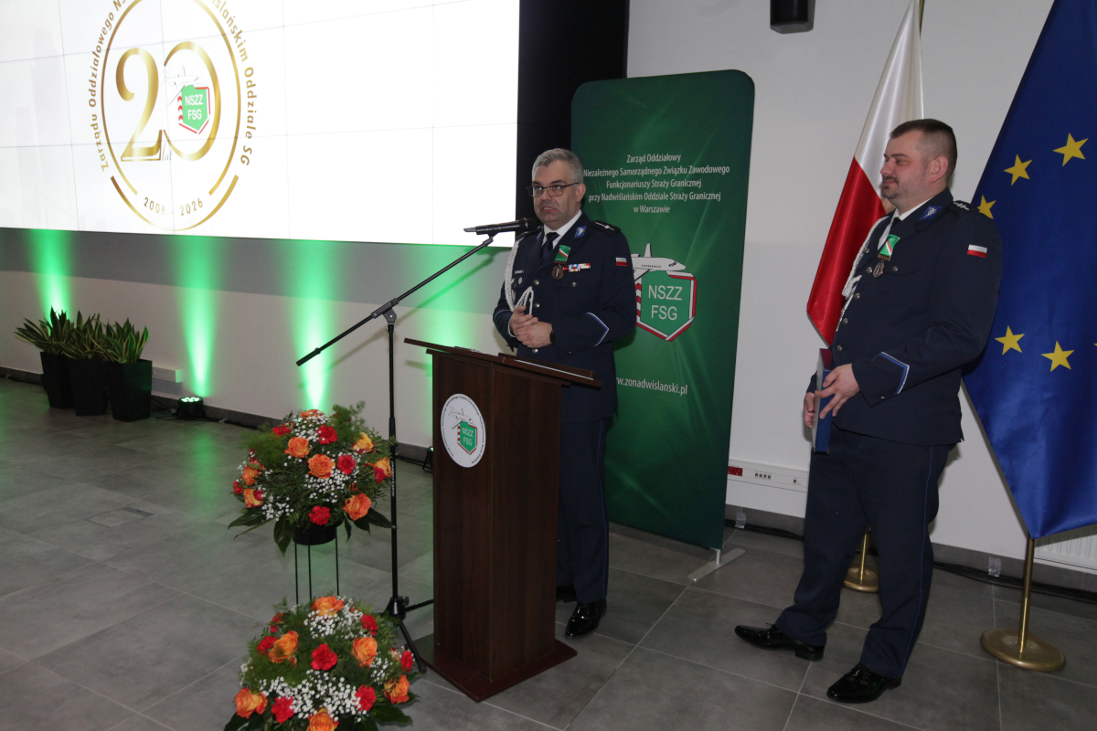 W dniu 7 marca 2026 roku w Ośrodku Konferencyjno-Szkoleniowym Straży Granicznej w Otwocku odbyła się Gala z okazji jubileuszu XX rocznicy powstania Zarządu Oddziałowego Niezależnego Samorządnego Związku Zawodowego Funkcjonariuszy Straży Granicznej przy Nadwiślańskim OSG im. Powstania Warszawskiego.
