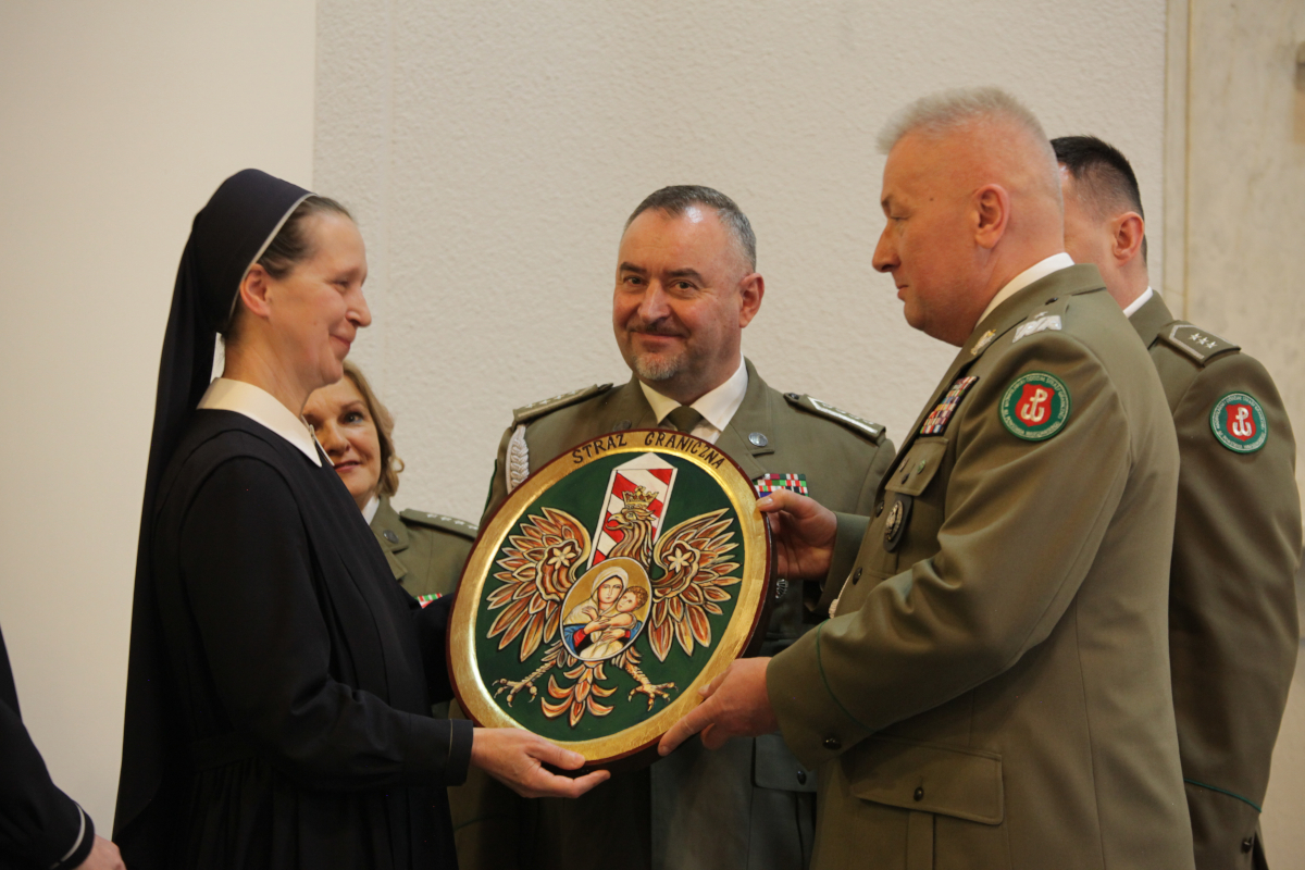 Przewodniczący Robert Lis podziękował księżom za odprawienie mszy, wręczając ryngrafy Straży Granicznej z wizerunkiem Matki Bożej Częstochowskiej. Następnie wspólnie z gen. Lutyńskim przekazał na ręce Siostry Prowincjalnej i Siostry Przełożonej ikonę, wykonaną przez p. Bogusława Osnowicza, przedstawiającą wizerunek Matki Bożej Po Trzykroć Przedziwnej, wpisany w odznakę Straży Granicznej. Siostra Michalina, Przełożona Zgromadzenia, podarowała jubileuszową, specjalnie ręcznie wykonaną, świecę z wizerunkiem Patronki.