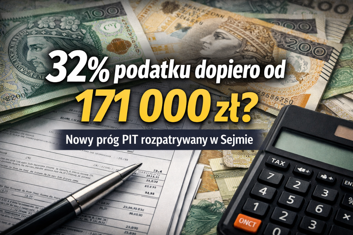 W polskim systemie podatkowym może pojawić się istotna zmiana dotycząca progów podatkowych. Do Sejmu trafił dokument, który zakłada podniesienie pierwszego progu podatkowego w podatku dochodowym od osób fizycznych (PIT). Jeśli propozycja zostałaby przyjęta, stawka 12% obowiązywałaby aż do dochodu 171 000 zł rocznie, a nie – jak obecnie – do 120 000 zł.