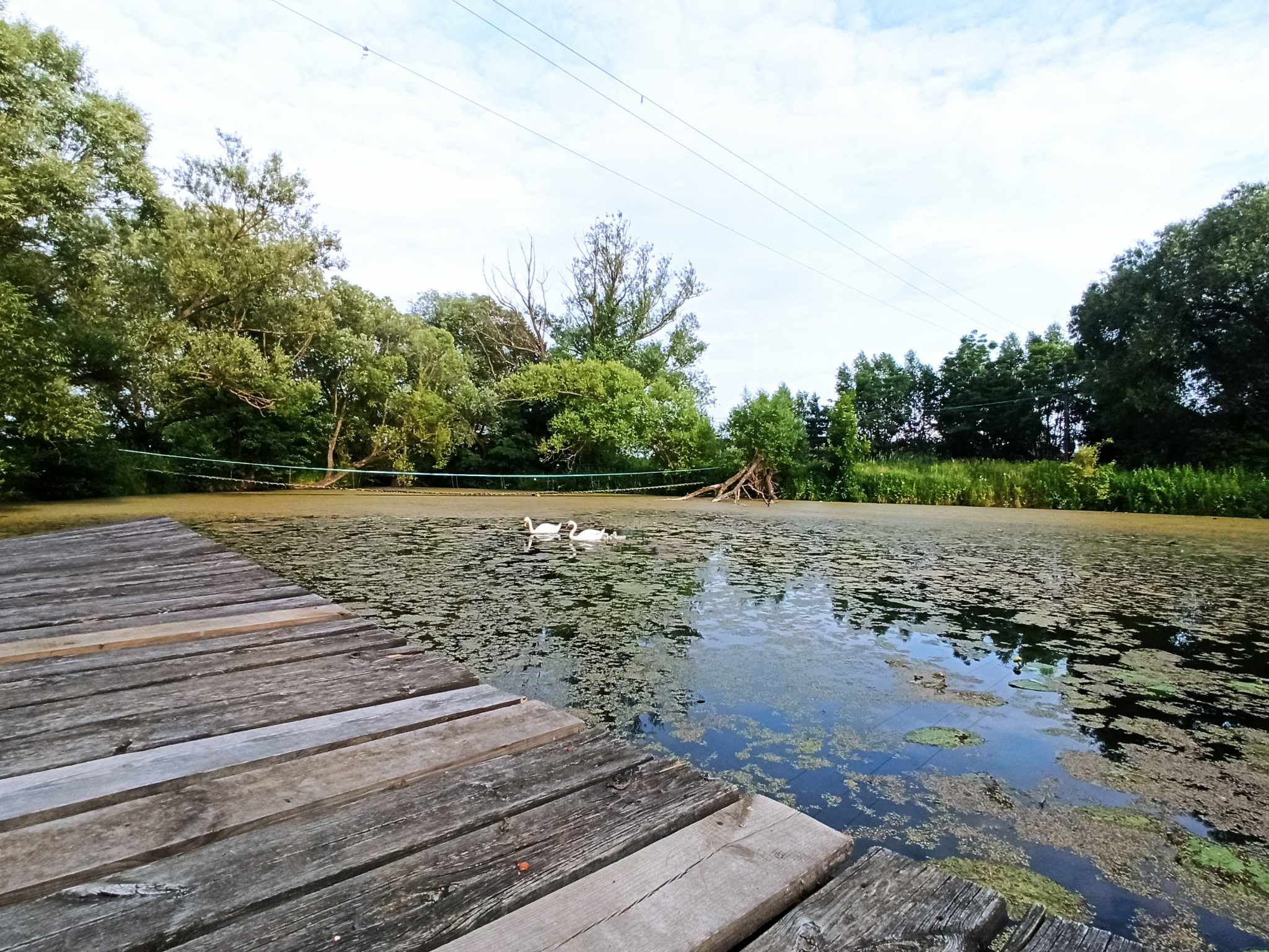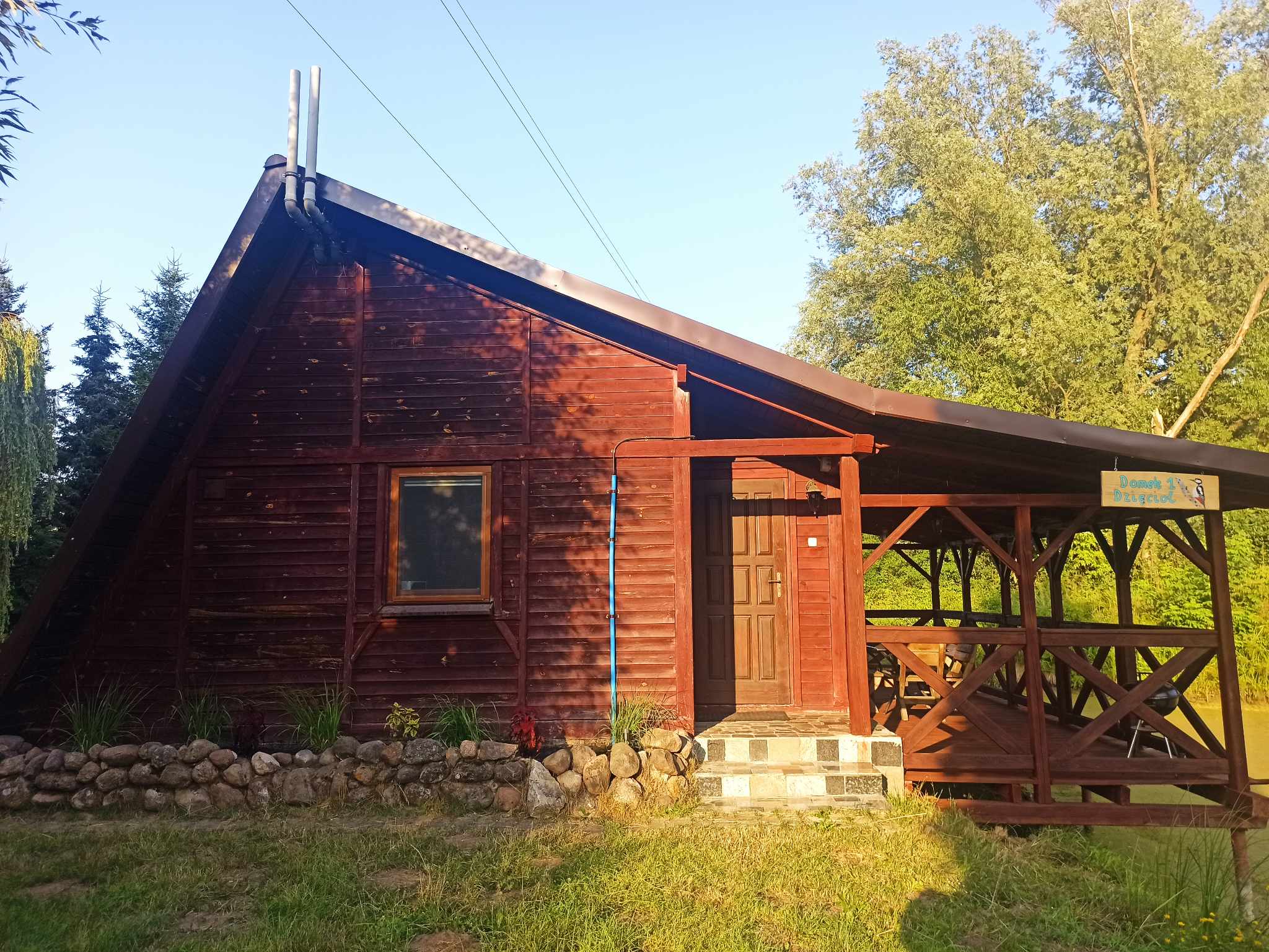 Domek nr 3. Wyjątkowy domek nad rozlewiskiem starorzecza Radomki. Konstrukcja drewniana, wykonany z bali o powierzchni 35 m2. Wyposażony jest w pełny węzeł sanitarny i aneks kuchenny. Jest lodówka i TV. Od strony południowej taras o powierzchni 16 m2 oraz molo drewniane o długości 40 m idealne na poranne ćwiczenia jogi. Siedząc na molo i chłodząc nogi w czystej wodzie możesz przywitać słońce w wyjątkowy sposób.To dobry początek dnia:) Domek maksymalnie może gościć 4 osoby (2 łóżka 1-osobowe i 1 łóżko 2-osobowe).