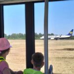 Następnie dzieci obserwowały start samolotu rejsowego linii Ryanair najbliżej jak się dało, z pozycji pasa startowego. Uśmiech i zadowolenie na twarzy dzieci były ogromne.
