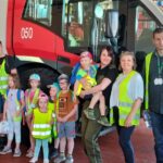 Następnie wszyscy uczestnicy poddali się kontroli bezpieczeństwa i zaopatrzeni w kamizelki odblaskowe podziwiali teren lotniska autobusem, który najpierw zawiózł dzieci do hangarów Barlolini Air, a później do Lotniskowej Straży Pożarnej.