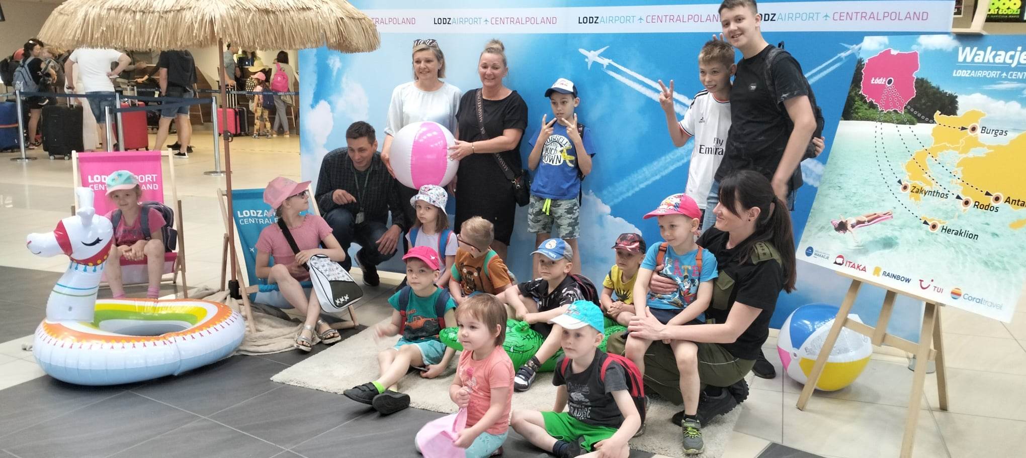 Po przybyciu na hol Terminala pasażerskiego międzynarodowego portu lotniczego w Łodzi uczestnicy spotkania zostali zaopatrzeni w niezbędną wiedzę związaną z zasadami bezpieczeństwa oraz informacją na temat lotniska i operacji lotniczych. Oczywiście rozpoczęcie wycieczki nastąpiło od grupowego zdjęcia „na leżakach”- wakacyjny klimat od razu udzielił się zwiedzającym.