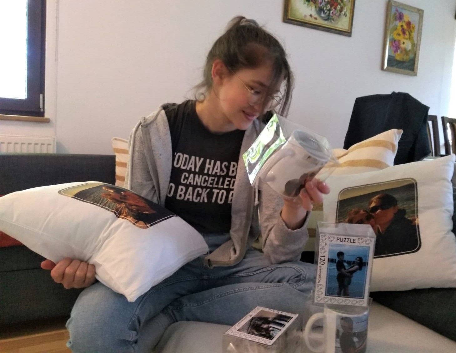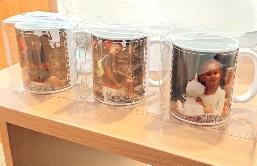 Dzieciaki dostały kubeczki ze swoim wizerunkiem, poduszki oraz puzzle.