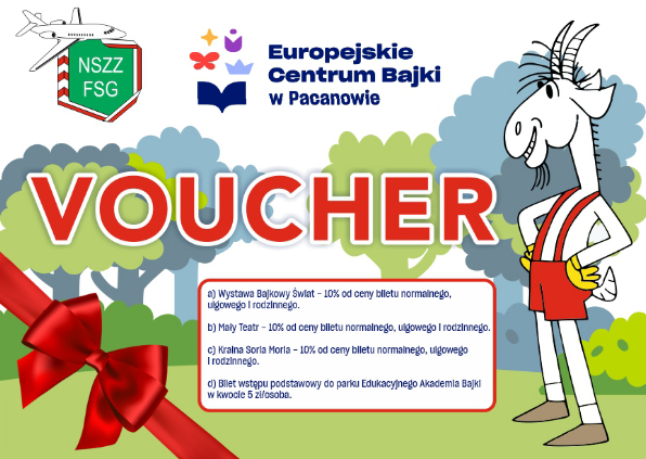 Dzięki zawartej umowie rabatowej pomiędzy ZO NSZZ FSG przy NwOSG, a Europejskim Centrum Bajki w Pacanowie związkowcy z NwOSG będą mogli korzystać z rabatów na zakupu biletów wstępu na atrakcje ECB po okazaniu vouchera.