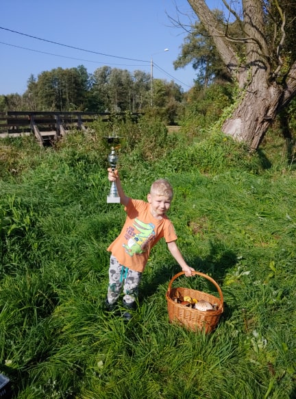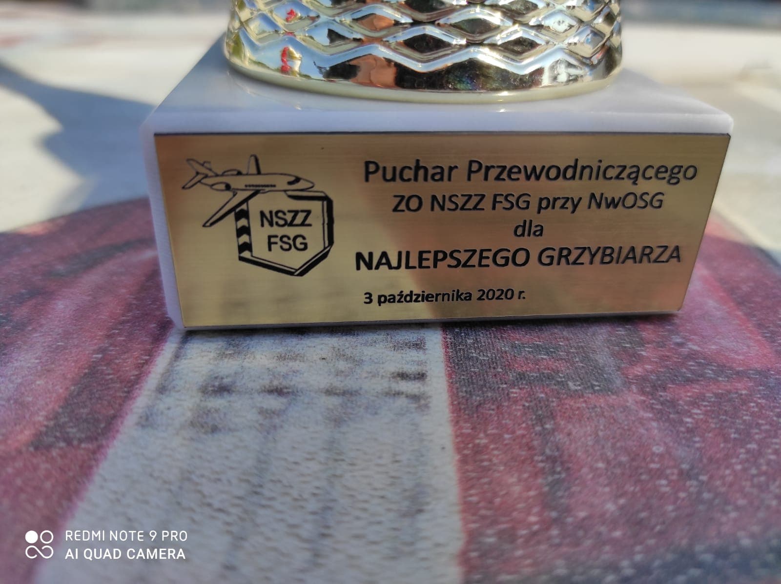 Puchar Przewodniczącego ZO NSZZ FSG przy NwOSG za największą ilość grzybów w koszu otrzymała rodzina Państwa Kotlimowskich. Nagrodę odebrał Kuba.