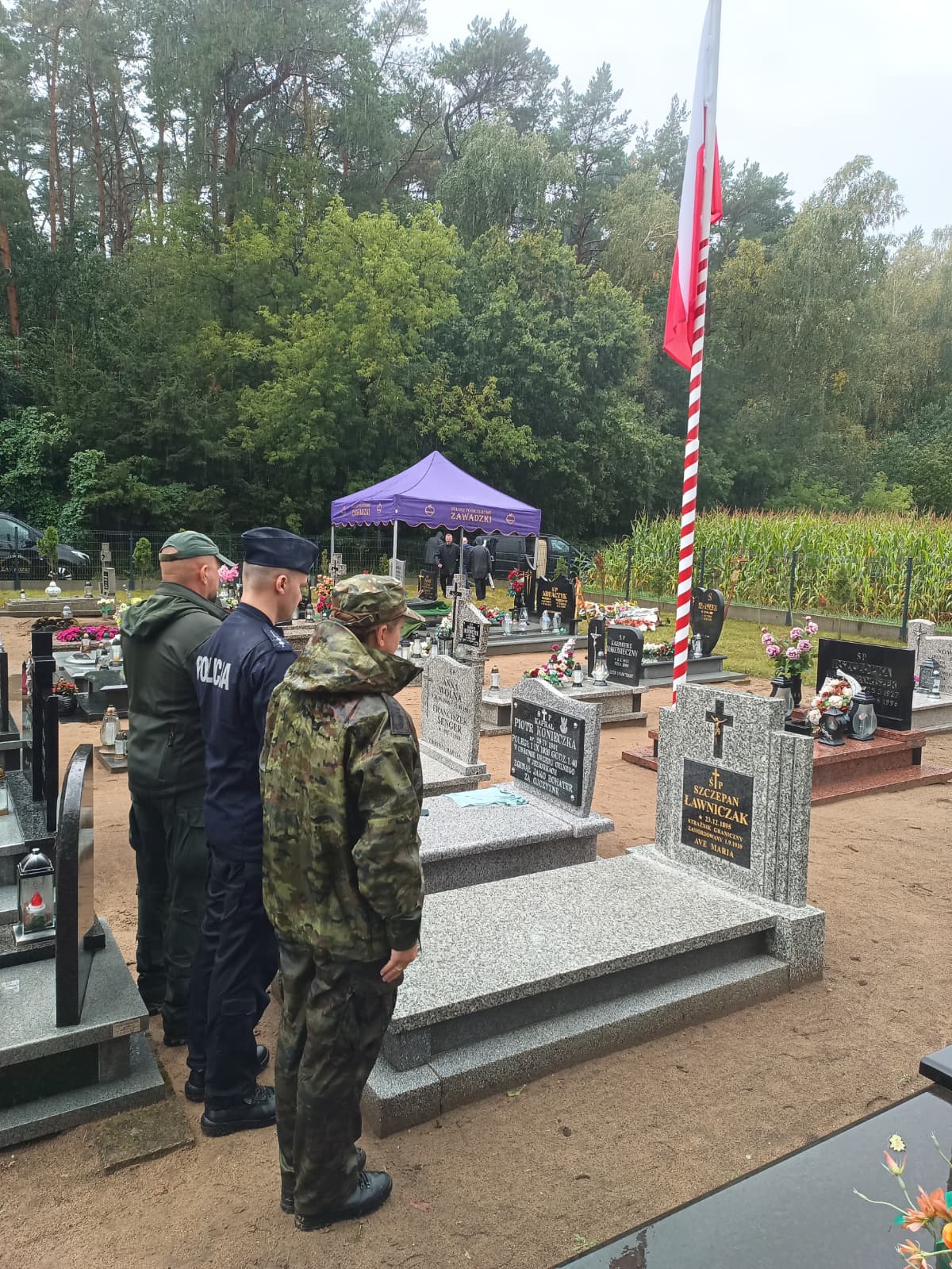 Już na koniec grupa mundurowych udała się na cmentarz parafialny w Śmiłowie, gdzie funkcjonariusze zapalili znicze na grobach spoczywających tam sześciu przedwojennych strażników granicznych, którzy przeżyli wojnę tj. Franciszka Konieczki, Tomasza Wiśniewskiego, Franciszka Błaszczyka, Stanisława Czwojdraka, Włodzimierza Smędy, Józefa Świniarka, żołnierza plutonu wzmocnienia Komisariatu SG w Kaczorach kpr. Piotra Konieczki, który poległ w obronie Urzędu Celnego w Jeziorkach jeszcze w godzinach wczesno porannych, a także Strażnika Granicznego Szczepana Ławniczaka, bestialsko zamordowanego nad ranem 01.09.1939 r. w Zelgniewie.