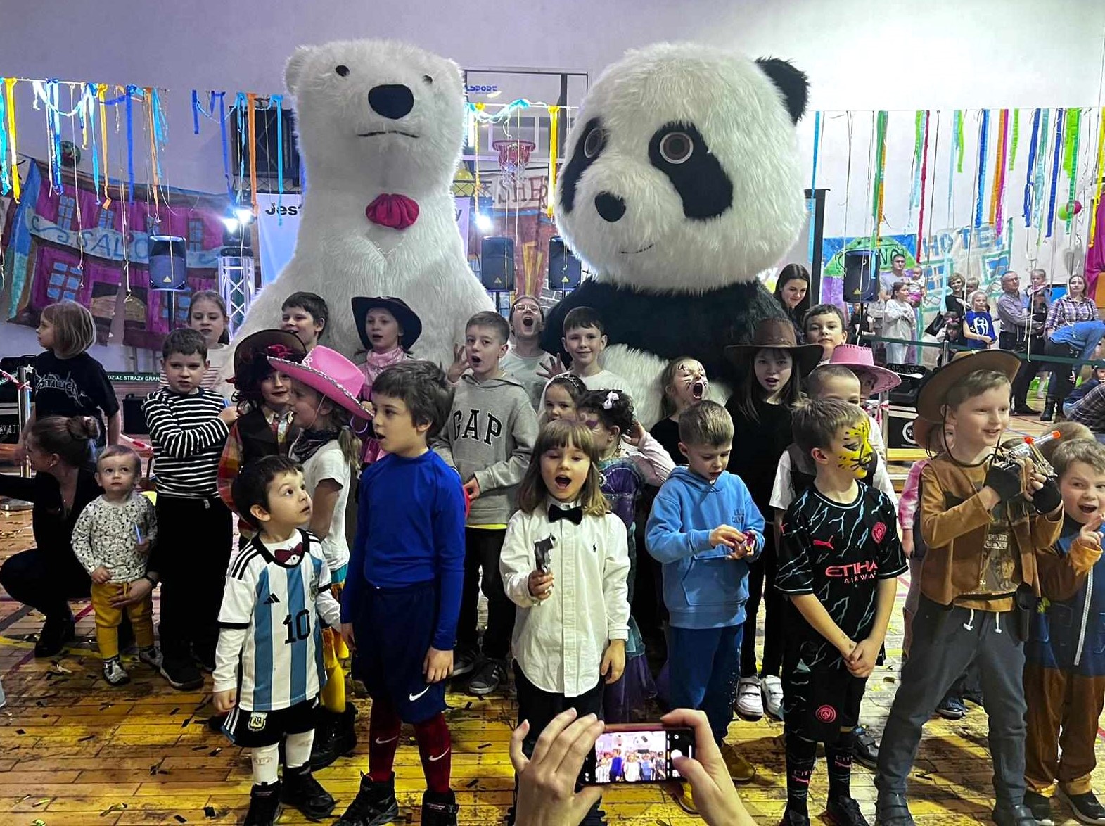 To nie koniec niespodzianek bowiem zwieńczeniem balu była wizyta św. Mikołaja, który przyjechał do nas prosto z Laponii witany radosnymi uśmiechami Dzieci i strzelającym konfetti.