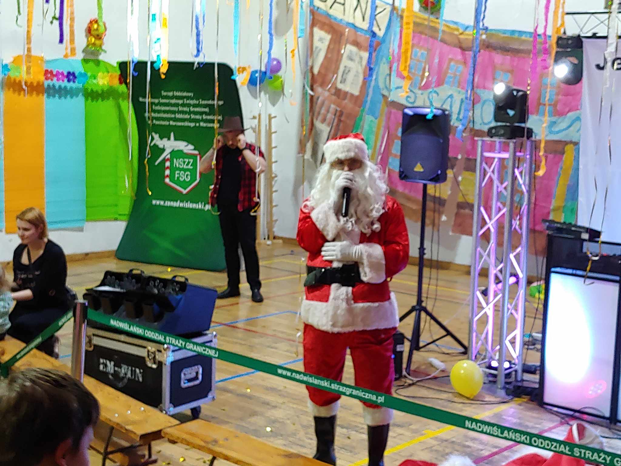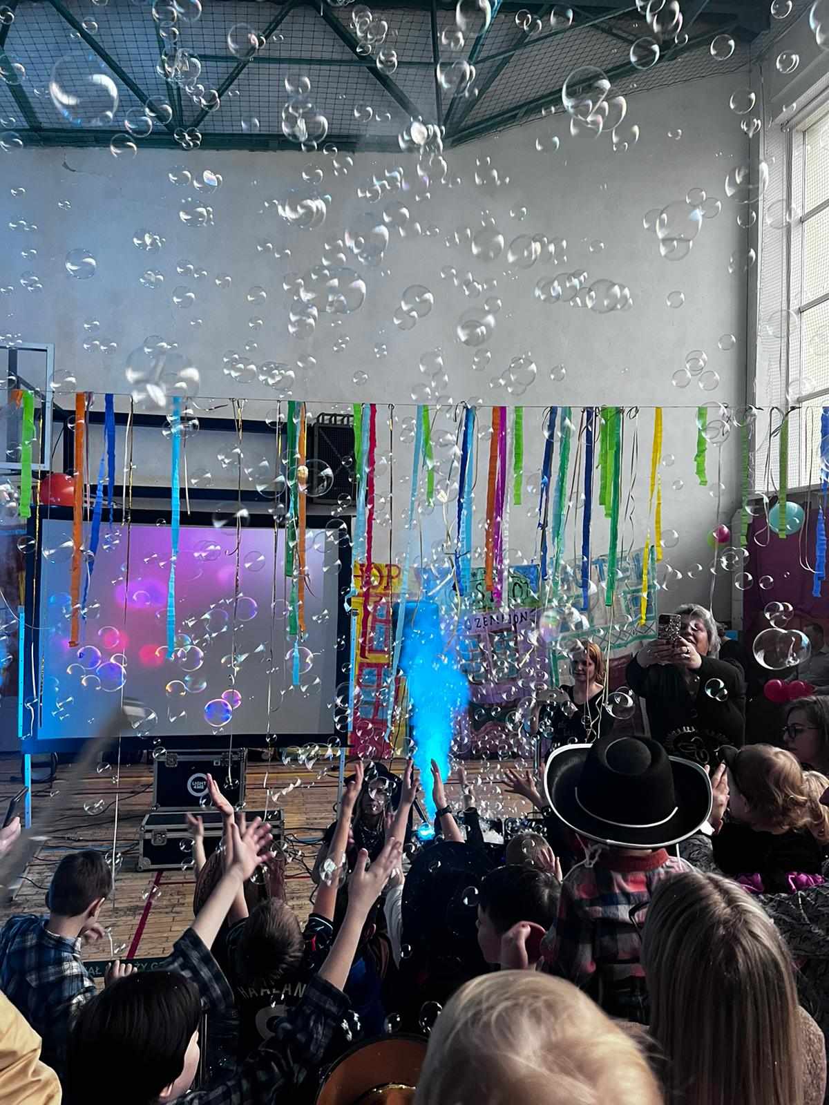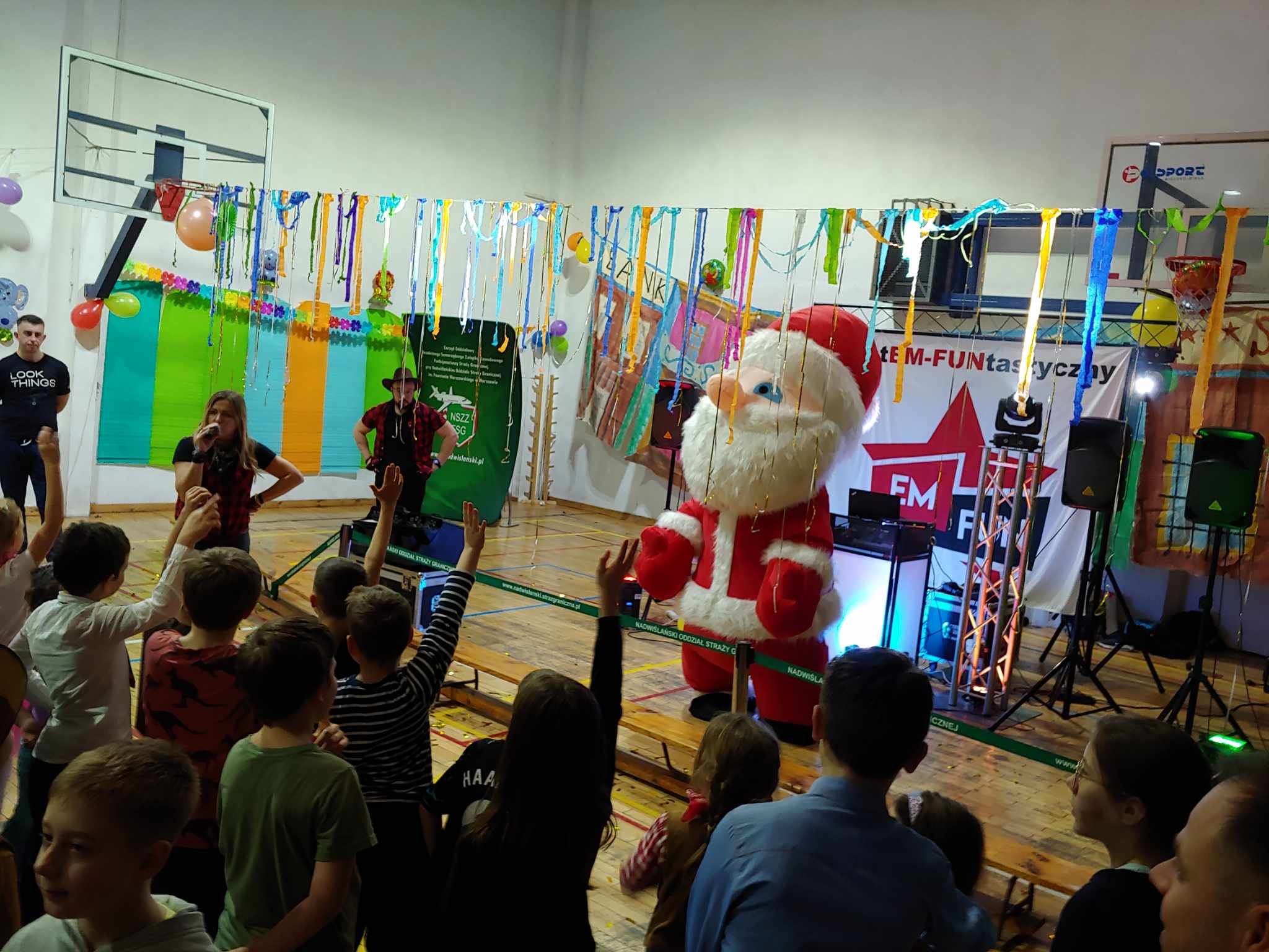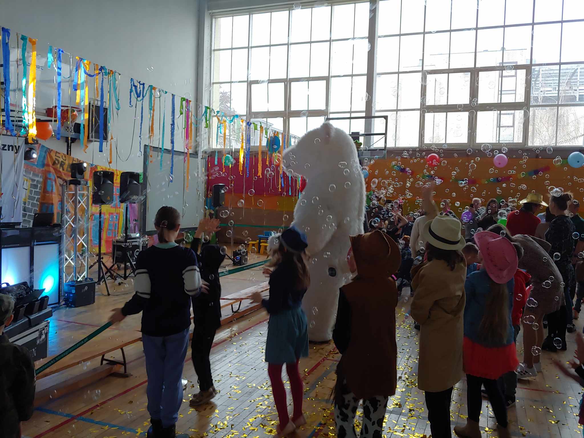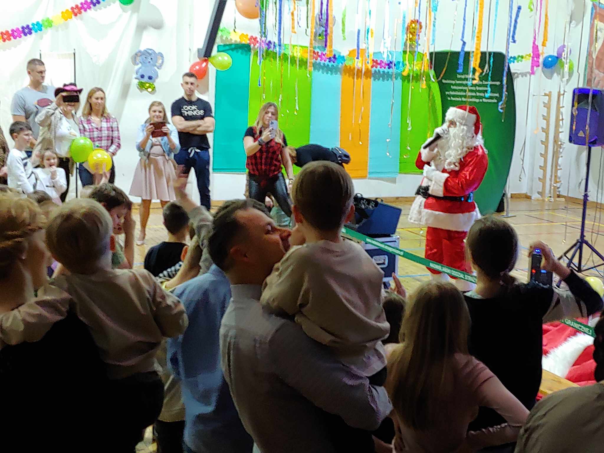 To nie koniec niespodzianek bowiem zwieńczeniem balu była wizyta św. Mikołaja, który przyjechał do nas prosto z Laponii witany radosnymi uśmiechami Dzieci i strzelającym konfetti.