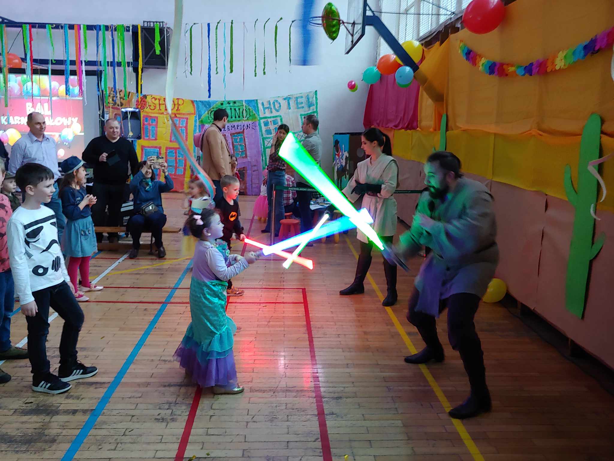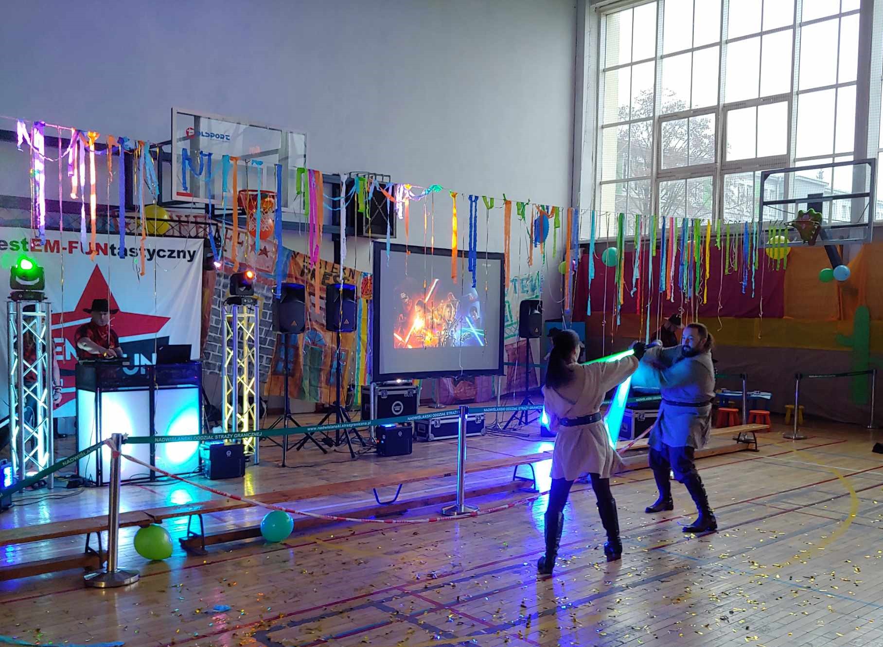 Spośród wielu atrakcji dzieciaki miały możliwość obejrzeć między innymi pokaz walki na miecze świetlne oraz samemu spróbować przenieść się w świat Gwiezdnych Wojen i zostać na chwile rycerzami Jedi. Pokaz przygotowali Martyna i Mateusz z Force Knight Academy