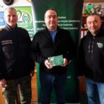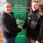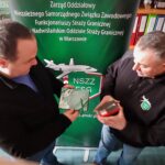 Przewodniczący ZO NSZZ FSG przy NwOSG wraz z wiceprzewodniczącym Markiem Zasimem wręczyli szanownemu koledze pamiątkowy ryngraf i upominek w podziękowaniu za wieloletnią działalność związkową i ogrom pracy na rzecz funkcjonariuszy.
