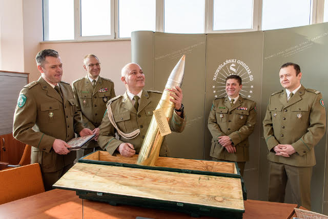 Podczas uroczystego spotkania Komendant Nadwiślańskiego Oddziału Straży Granicznej płk SG Andrzej Rytwiński wraz zastępcą płk. SG Zbigniewem Bartnickim podziękował odchodzącemu funkcjonariuszowi za lata wzorowej i oddanej służby, życząc pomyślności na dalszym etapie życia. Nie zabrakło także podziękowań i życzeń ze strony funkcjonariuszy i współpracowników z wydziału. Na okoliczność pożegnania, odchodzącemu koledze wręczyli wydziałowe tablo ze swoimi wizerunkami oraz pamiątkową atrapę 100 mm naboju artyleryjskiego wykonanego specjalnie na tę okazję. Uroczystość zakończył słodki poczęstunek i wspólna fotografia.