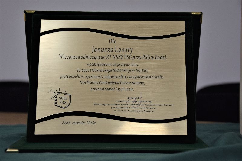 W dniu 27.06.2019 roku Wiceprzewodniczący Zarzadu Terenowego NSZZ FSG przy Placówce SG w Łodzi kolega Janusz Lasota zakończył służbę w Placówce SG w Łodzi.