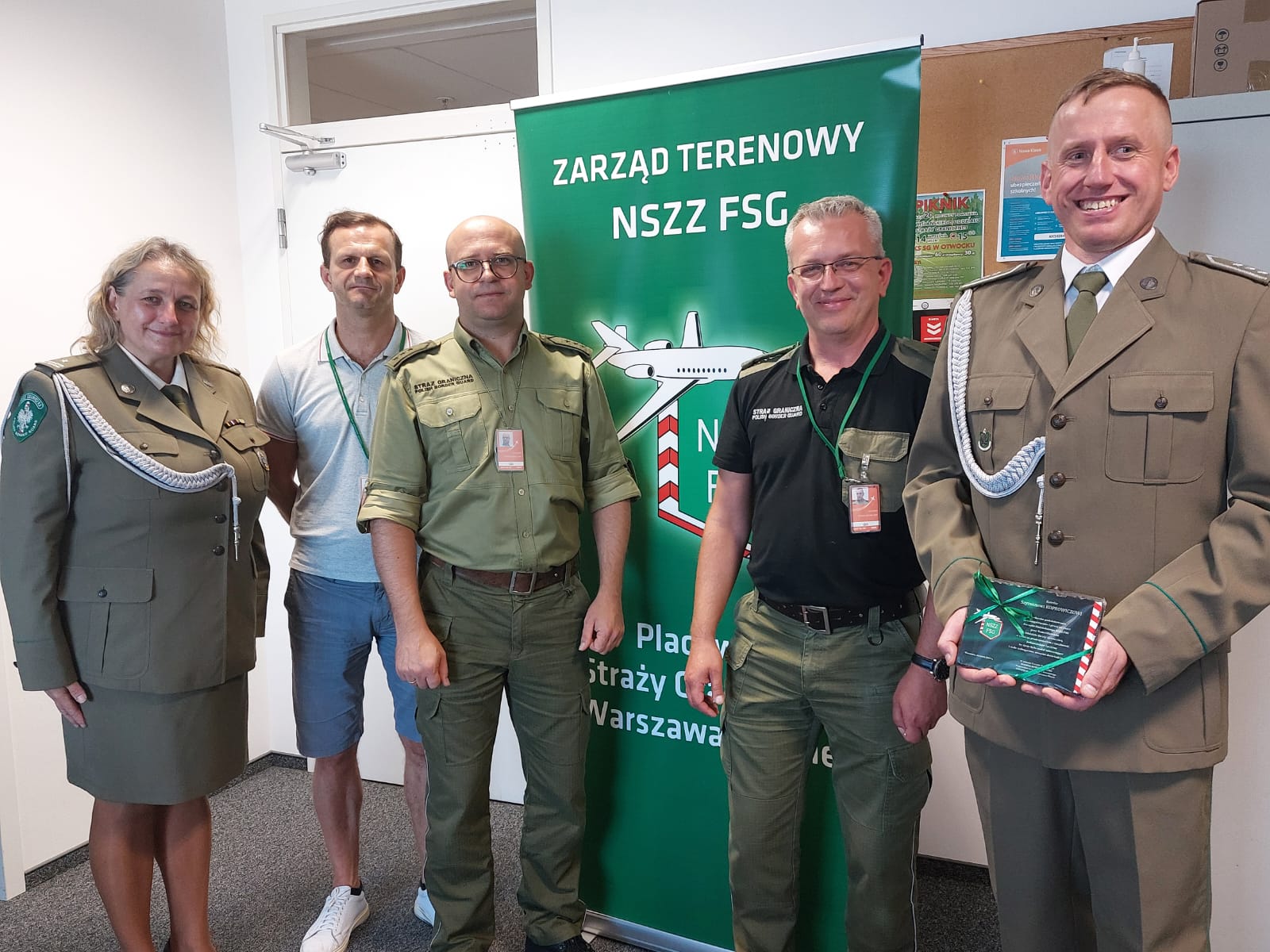 W dniu 3 września 2024 roku w siedzibie Placówki Straży Granicznej Warszawa – Okęcie odbyło się uroczyste pożegnanie kolegi Szymona Koprowicza, który zakończył swoją służbę w naszych szeregach. Wydarzenie to zgromadziło kadrę kierowniczą, przedstawicieli Zarządu Terenowego NSZZ FSG, a także licznych kolegów i koleżanki, którzy przyszli wyrazić swoje uznanie i wdzięczność za lata wspólnej służby.