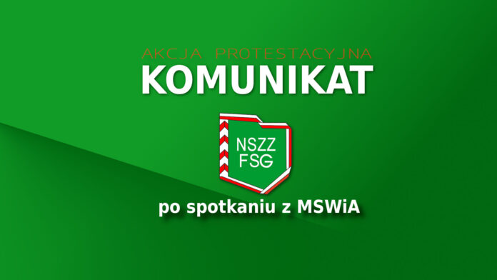 Spotkanie strony rządowej ze związkami zawodowymi zrzeszającymi funkcjonariuszy służb mundurowych MSWiA odbyło się w czwartek (24 listopada 2023 r.) w Ministerstwie Spraw Wewnętrznych i Administracji. Wzięli w nim udział: Maciej Wąsik, sekretarz stanu w MSWiA; Mariusz Cichomski – dyrektor Departamentu Porządku Publicznego; Edward Zaremba – pełnomocnik Ministra Spraw Wewnętrznych i Administracji ds. związków zawodowych, Joanna Miłkowska-Bartos – zastępca dyrektora Departamentu Budżetu MSWiA; Marcin Kolasa, przewodniczący Zarządu Głównego Niezależnego Samorządnego Związku Zawodowego Funkcjonariuszy Straży Granicznej; Rafał Jankowski, przewodniczący Zarządu Głównego Niezależnego Samorządnego Związku Zawodowego Policjantów; Krzysztof Hetman, przewodniczący Niezależnego Samorządnego Związku Zawodowego Pracowników Pożarnictwa; Bartłomiej Mickiewicz, przewodniczący Krajowej Sekcji Pożarnictwa NSZZ „Solidarność”.