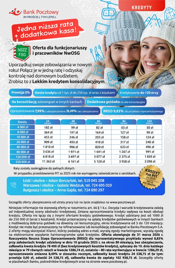 Kredyt konsolidacyjny dla funkcjonariuszy i pracowników NWOSG – oferta Banku Pocztowego 2026