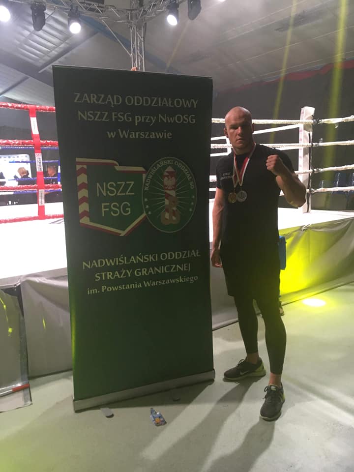 W dniu 13 października 2018 roku Kolega Łukasz Jarząbek z Placówki Straży Granicznej w Łodzi został Mistrzem Polski Służb Mundurowych w K1 oraz Vicemistrzem Kickboxingu kick – light. Czyli mamy w swoich szeregach prawdziwego związkowego walczaka. Gratulacje dla zwycięzcy od Zarządu Oddziałowego NSZZ FSG przy NwOSG, czapka z głowy Mistrzu!