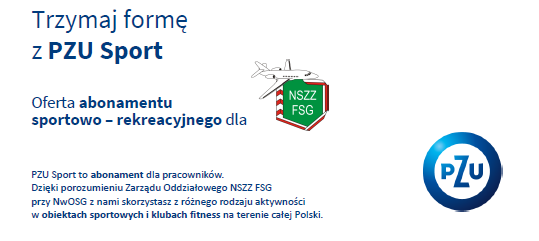 Oferta abonamentu sportowo – rekreacyjnego PZU Sport dla członków ZO NSZZ FSG przy NwOSG