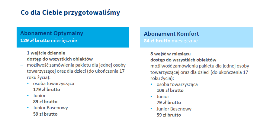 • dostęp do ponad 3600 obiektów sportowo – rekreacyjnych w całej Polsce