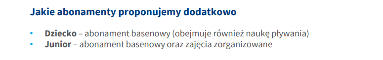 Na pierwszej stronie po zalogowaniu są widoczne abonamenty sportowe .