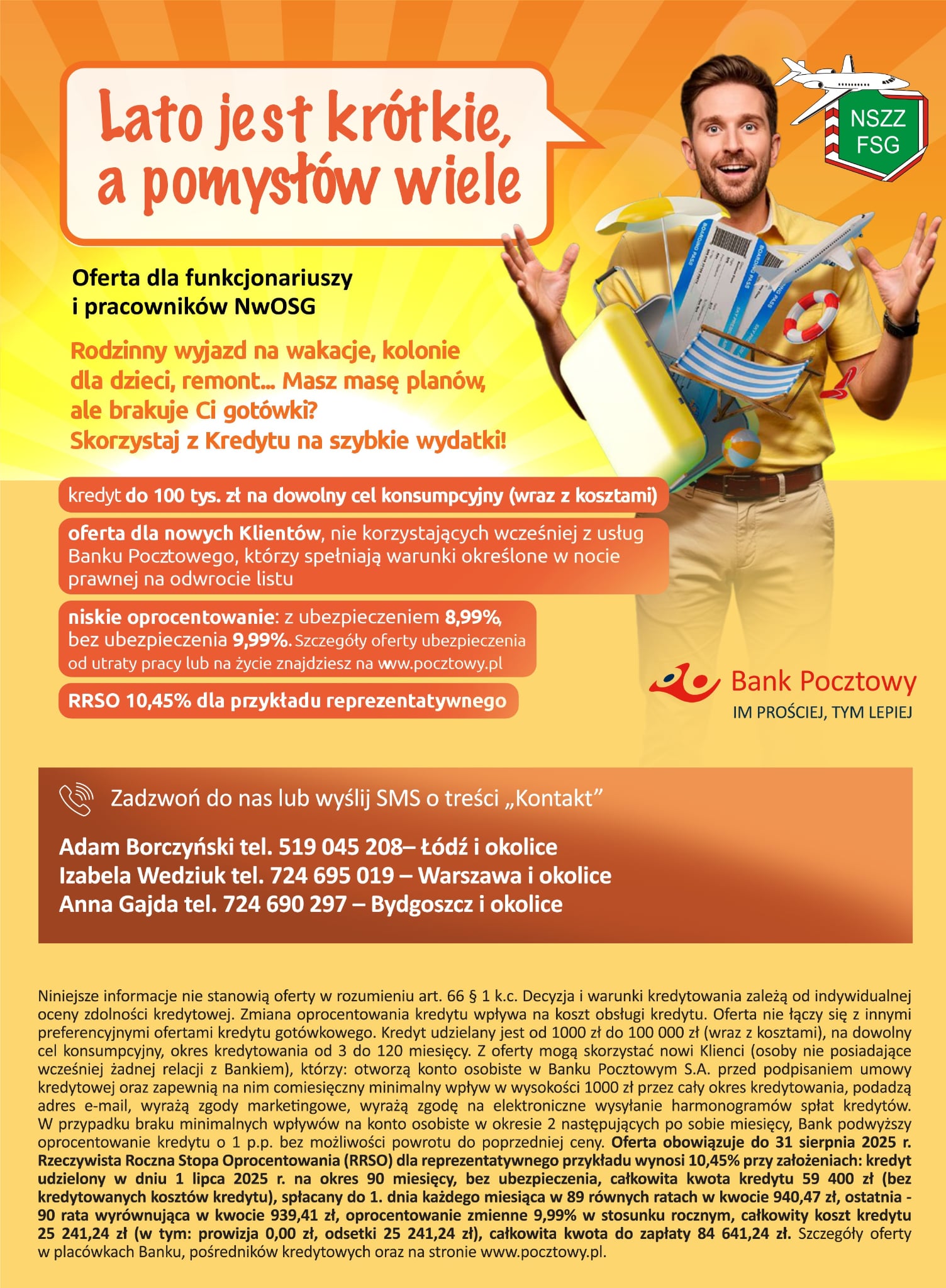 Zarząd Oddziałowy NSZZ FSG przy Nadwiślańskim Oddziale Straży Granicznej współpracuje z Bankiem Pocztowym.
