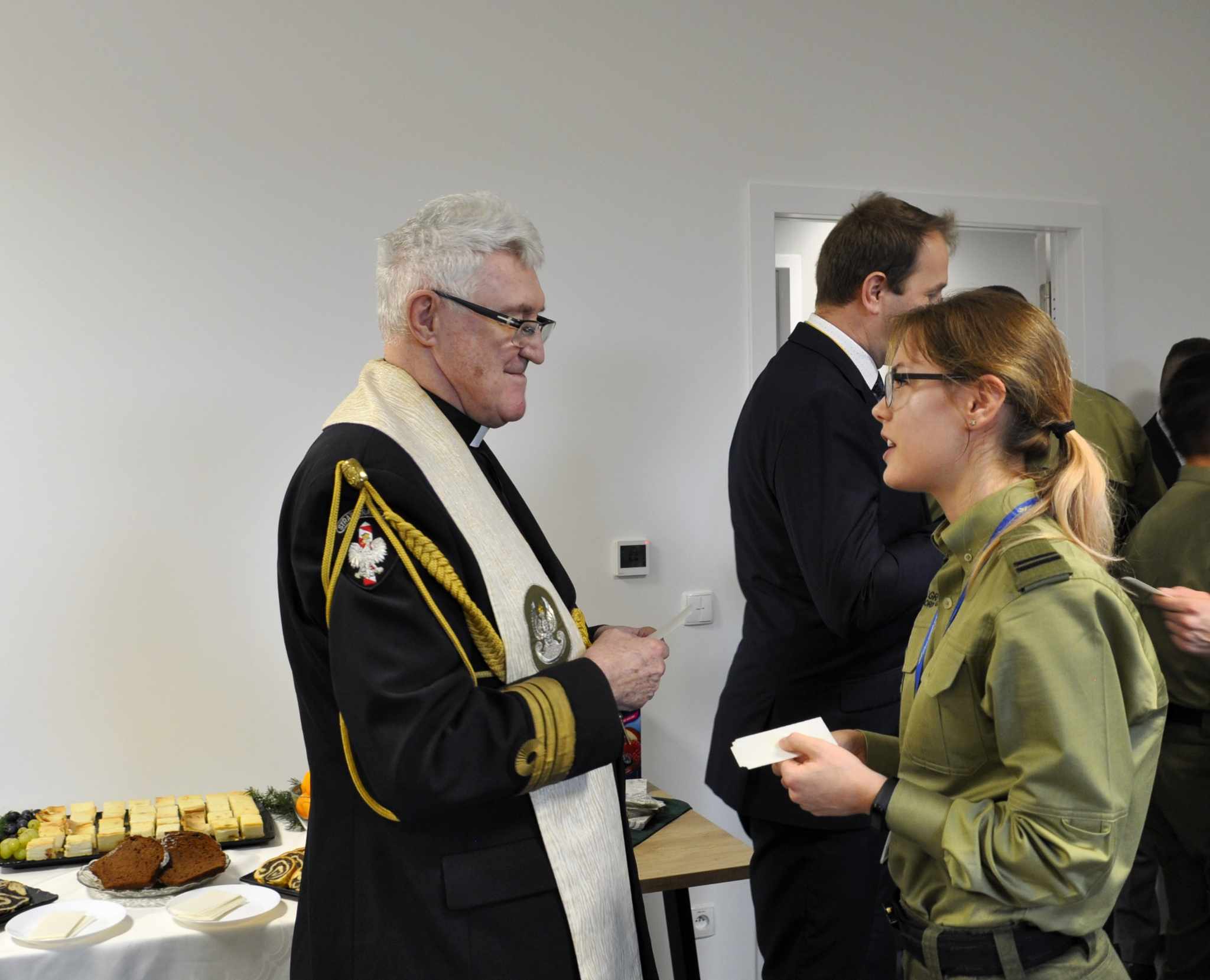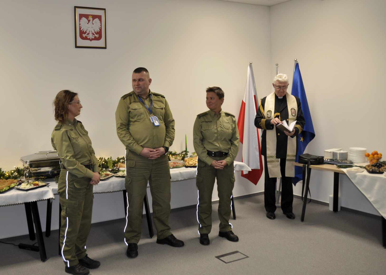 Spotkanie swoją obecnością uświetnił ksiądz kapelan NwOSG ppłk SG Ryszard Preuss, który odczytał Ewangelię Św. Łukasza, a uczestnicy spotkania połamali się opłatkiem i złożyli sobie życzenia świąteczne.