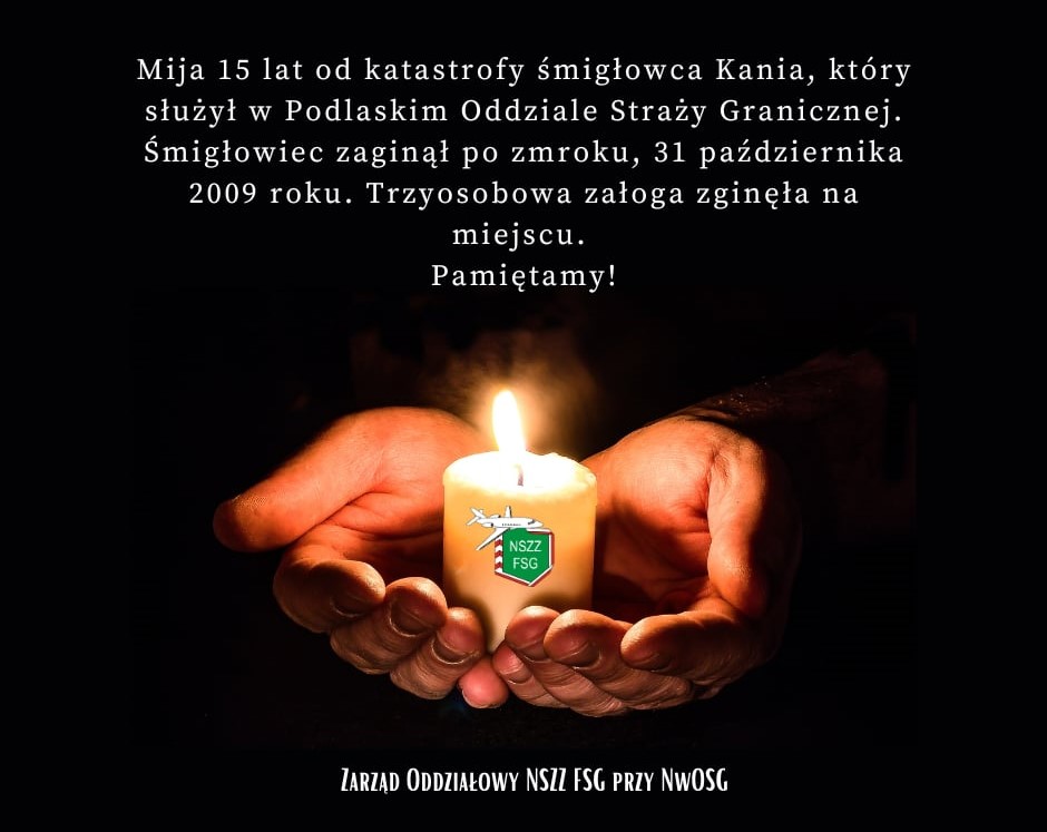 Dziś  mija 15 lat od tragicznej śmierci por. SG pil. Andrzeja Żukowskiego, chor. szt. SG Bartłomieja Bartnickiego i chor. SG Marcina Bezubika – lotników z Podlaskiego Oddziału Straży Granicznej.