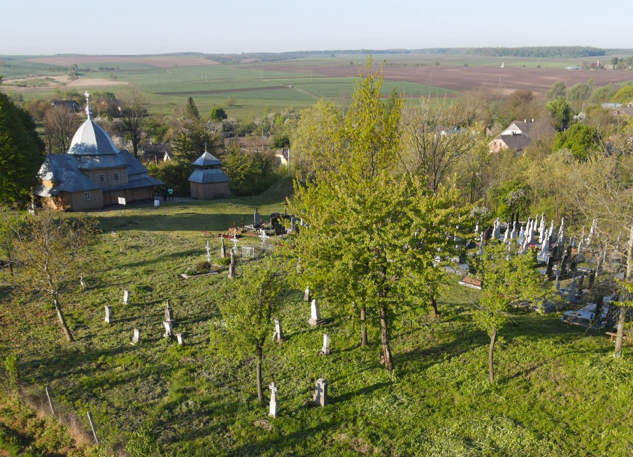 1 zdjęcie: cmentarz w Warężu – fotka z dołu 09.2021-fotka z góry 04.2024 i 2 zdjęcie: cmentarz w Łubowie