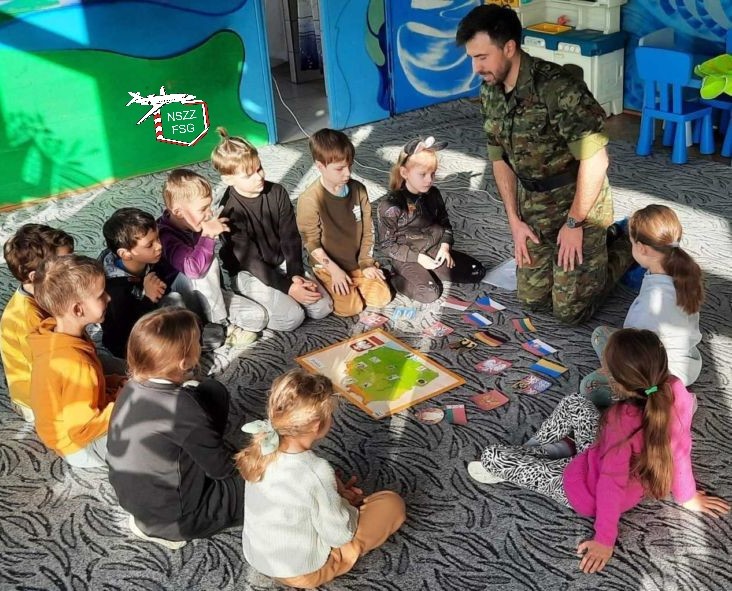 W ramach tygodnia zawodów w Przedszkolu Niepublicznym Flisaczek w Toruniu Straż Graniczna krzewi, opowiada i odpowiada na pytania najmłodszych. W ramach prowadzonych zajęć dzieci poznały naszych sąsiadów, przebieg granicy oraz jej oznaczenia i obywatelstwa.