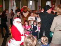 Kulminacyjnym punktem spotkania było przybycie Świętego Mikołaja w asyście Renifera, który wszystkie dzieci osobiście obdarował paczkami i chętnie pozował do wspólnych zdjęć. Dla każdego zmęczonego trudami naszej zabawy uczestnika jak i opiekuna czekał słodki poczęstunek oraz gorące i zimne napoje. Niestety wszystko co dobre szybko się kończy i około godziny 15.00 musieliśmy się pożegnać mając nadzieję, że za rok znów się spotkamy.