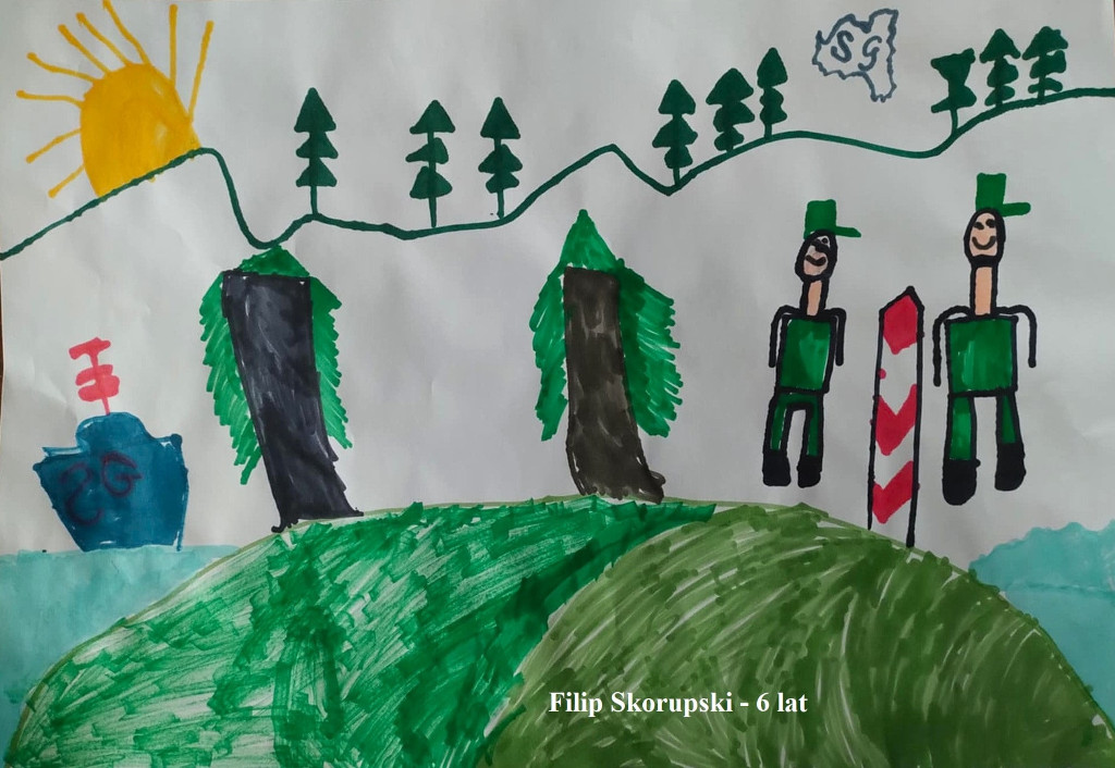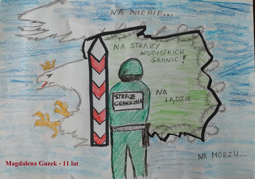 Wszystkim dzieciom serdecznie dziękujemy za wykonanie pięknych prac plastycznych, w których została przedstawiona ciężka i oddana służba Strażników Granicznych. Prace były wykonane w różnych technikach.