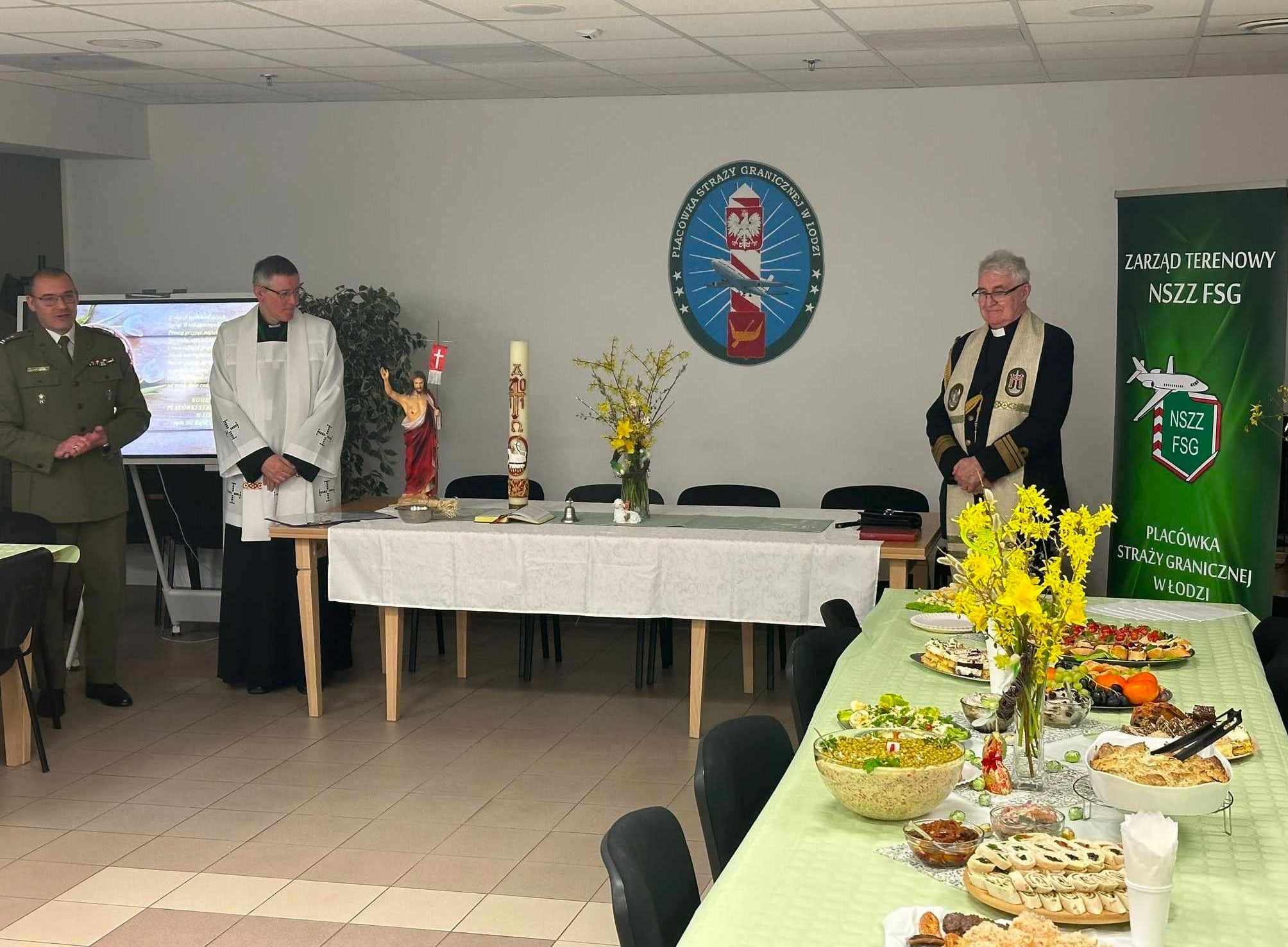 22 marca 2024 roku z udziałem Komendanta Placówki, Kapelana NwOSG ppłk SG Ryszarda Preussa i Księdza Grzegorza Dziewulskiego Kapelana Portu Lotniczego w Łodzi oraz funkcjonariuszy i pracowników odbyło się spotkanie wielkanocne w Placówce SG w Łodzi.