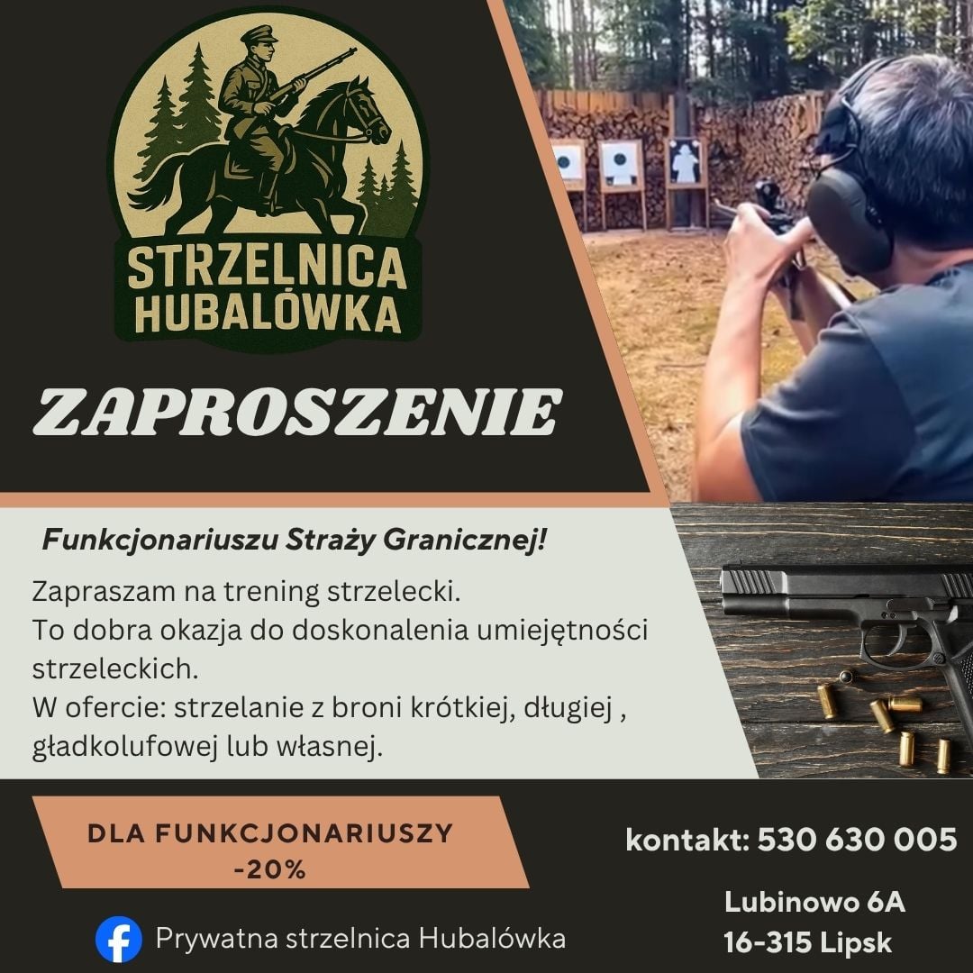 Dzięki porozumieniu ZO NSZZ FSG przy NwOSG z właścicielem Strzelnicy Hubalówka funkcjonariusze Straży Granicznej otrzymają 20% zniżki na treningi.