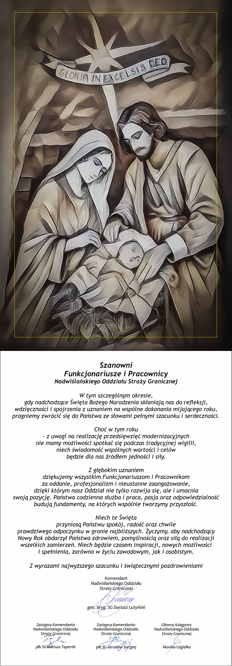 źródło: https://www.nadwislanski.strazgraniczna.pl/wis/aktualnosci/69592,Swiateczne-zyczenia-Kierownictwa-Nadwislanskiego-Oddzialu-Strazy-Granicznej.html