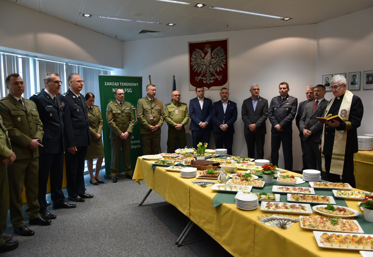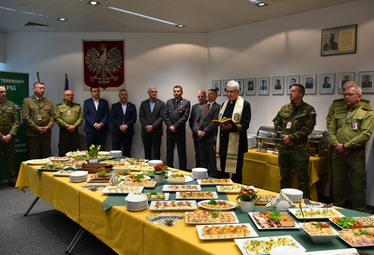 Wyjątkowy, świąteczny charakter spotkania podkreślił kapelan Nadwiślańskiego Oddziału Straży Granicznej ks. kmdr por. SG Ryszard Preuss, który poprowadził modlitwę oraz dokonał poświęcenia pokarmów, wprowadzając uczestników w atmosferę Wielkiej Nocy.