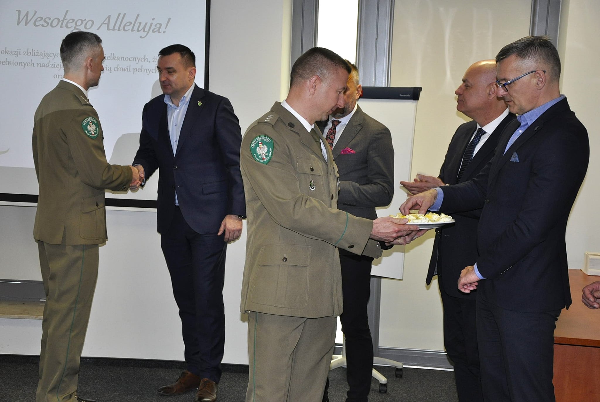 Z tej okazji serdeczne życzenia spokojnych, rodzinnych i pełnych radości świąt przekazał wszystkim zebranym Zastępca Komendanta PSG w Modlinie kpt. SG Michał Młodzianowski oraz wiceprzewodniczący ZO NSZZ FSG przy NwOSG Paweł Matuszewski.