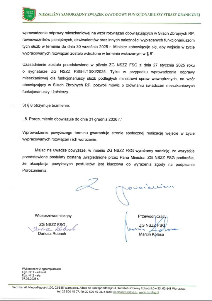 Uwagi Zarządu Głównego NSZZ FSG do drugiego projektu porozumienia z MSWiA z dnia 4 lutego 2025 roku