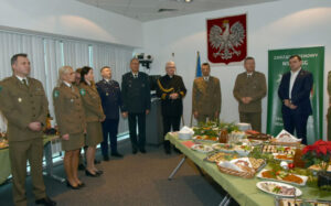 Bożonarodzeniowe oraz noworoczne życzenia złożył Zastępca Komendanta NwOSG płk. SG Mariusz Taperek, Komendant Placówki płk. SG Piotr Czarnecki, wiceprzewodniczący ZO NSZZ FSG przy NwOSG Paweł Matuszewski oraz wiceprzewodniczący ZT NSZZ FSG przy PSG Warszawa Okęcie Łukasz Kurek.