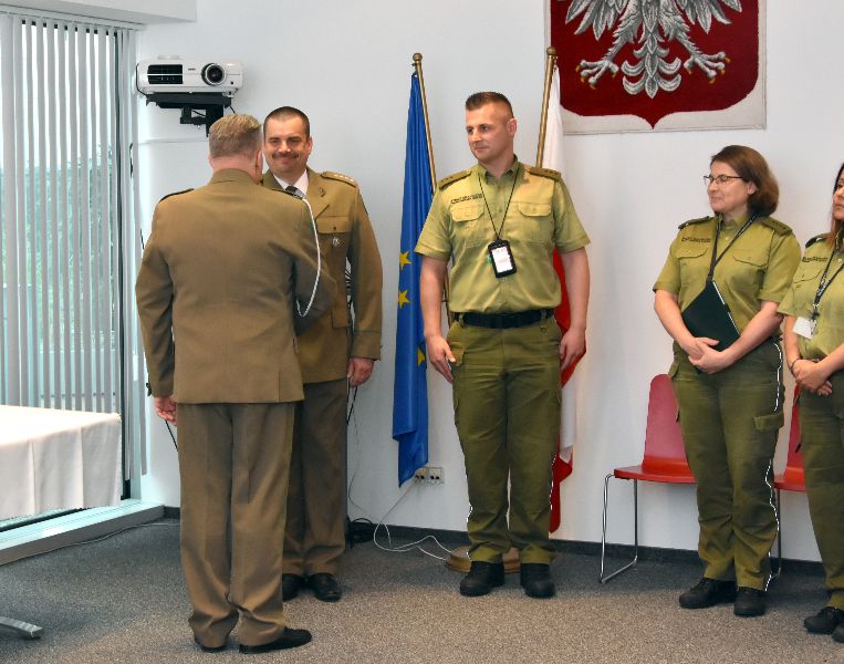 W trakcie uroczystości Komendant płk SG Piotr Lisiak oraz kpt. SG Grzegorz Kwaśniewski otrzymali z rąk przedstawicieli TOZ NSZZ FSG w osobie Przewodniczącego ZT NSZZ FSG przy PSG Warszawa-Okęcie kol. Krystiana Wojciechowskiego oraz Wiceprzewodniczącego kol. Dominika Michalaka pamiątkowe ryngrafy.