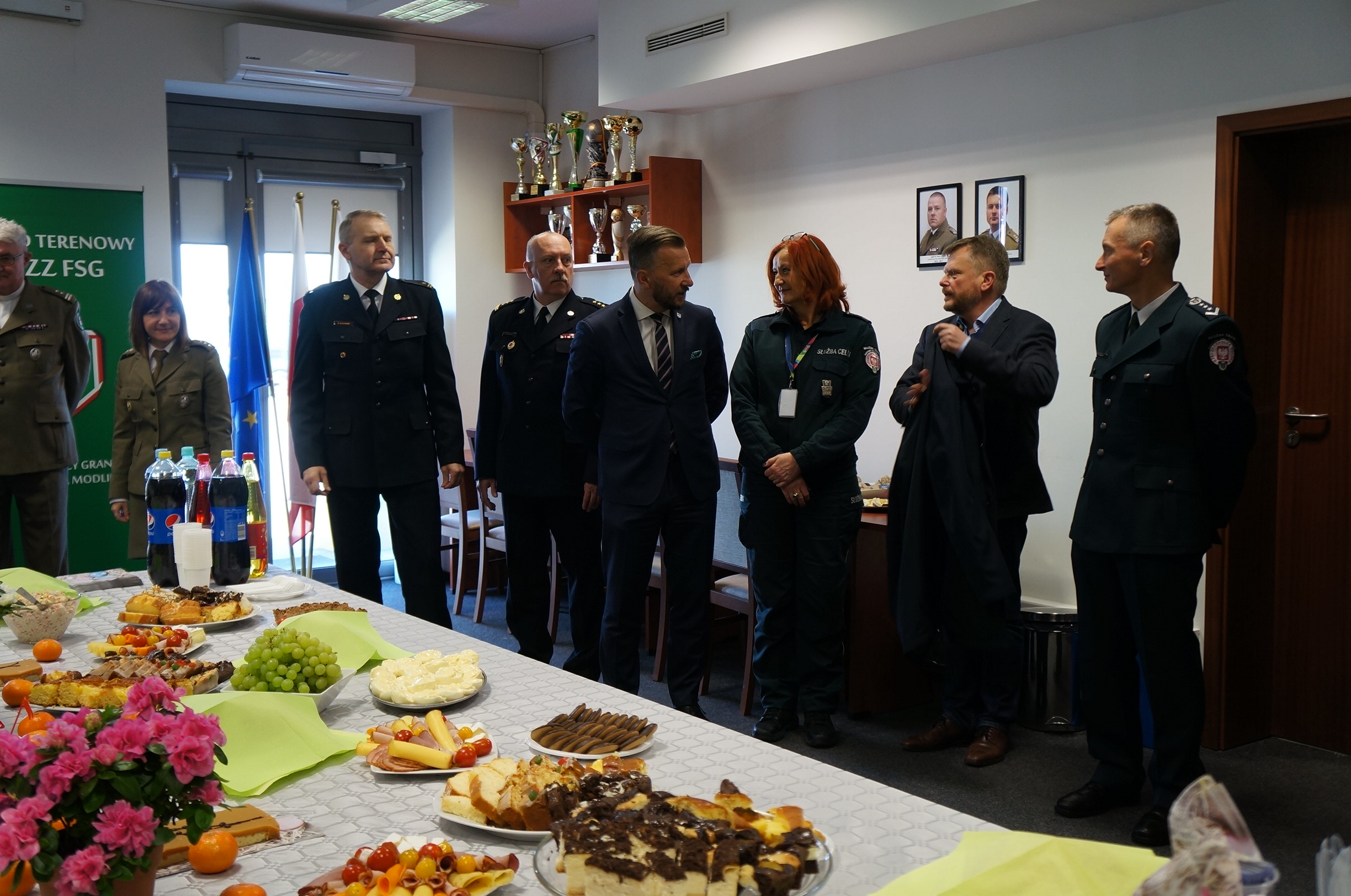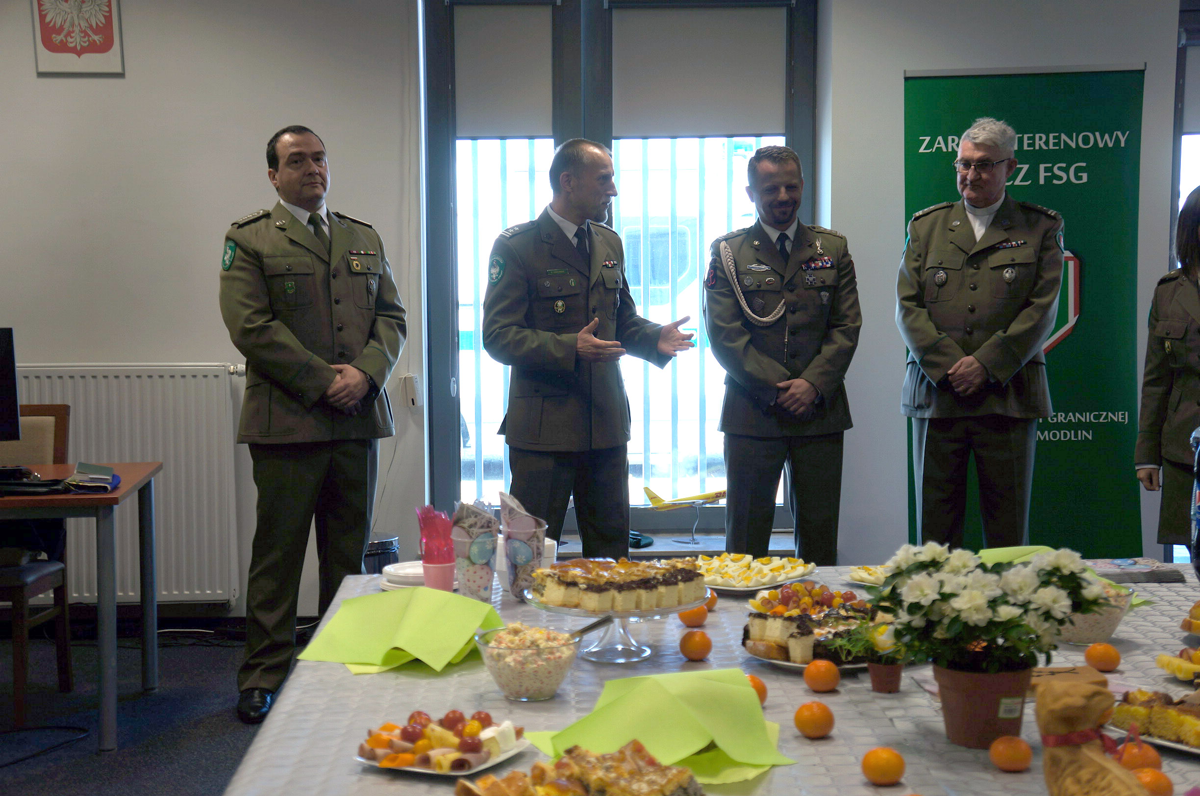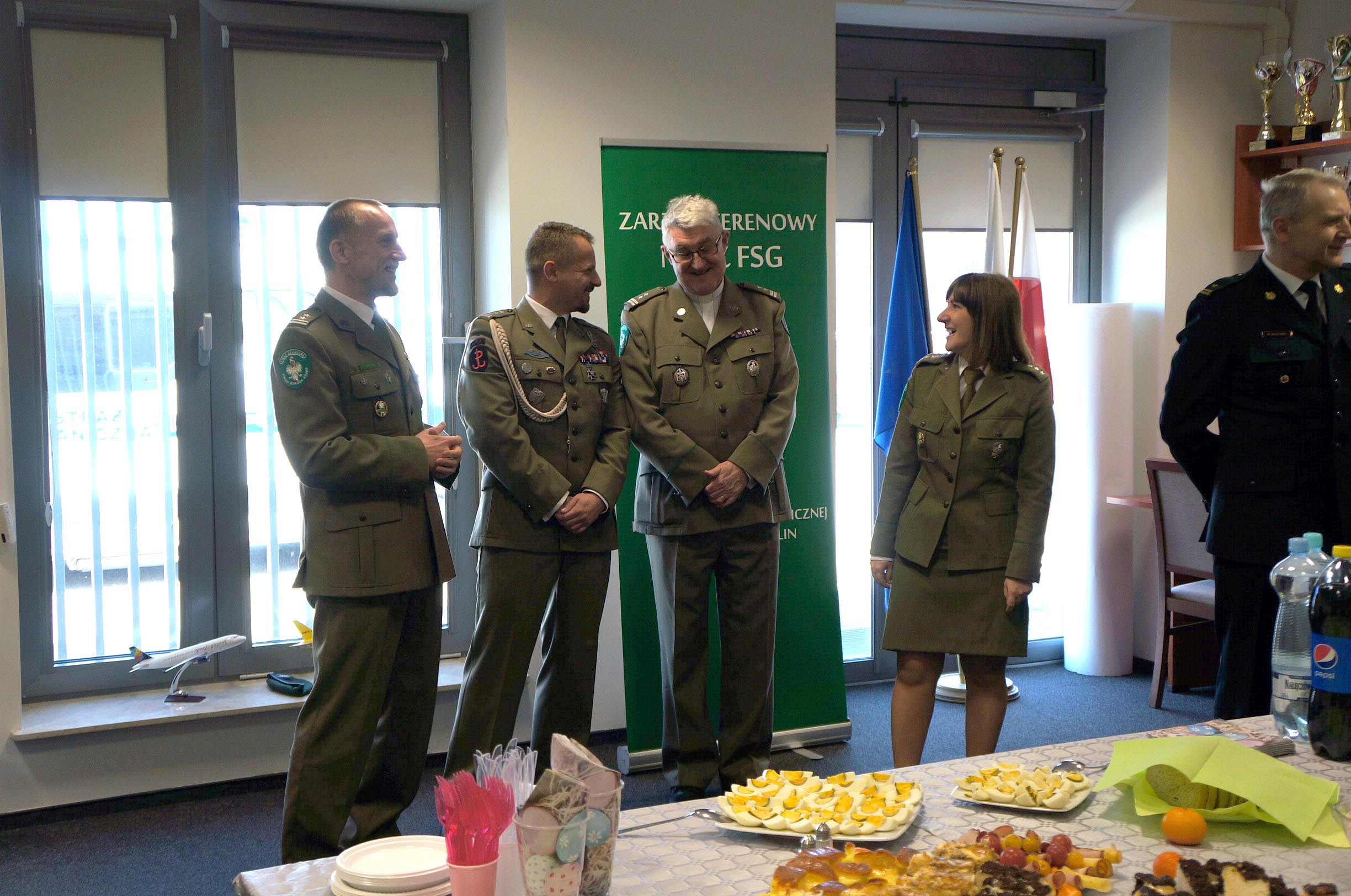 W dniu 16 kwietnia 2019 roku o godzinie 10.00 w PSG Warszawa Modlin odbyło się spotkanie funkcjonariuszy i pracowników związanym ze świętami wielkanocnymi. Tradycyjnie jako pierwszy przywitał wszystkich Komendant PSG Warszawa Modlin ppłk SG Krzysztof Jurkowski, który złożył serdeczne życzenia świąteczne. Podziękował za tak liczne przybycie gościom, wśród których znaleźli się: Burmistrz Nowego Dworu Mazowieckiego, Prezes MPL Warszawa-Modlin, Przedstawiciele PSP w Nowym Dworze Mazowieckim oraz Izby Celno Skarbowej na naszym lotnisku. Szczególne miejsce w podziękowaniach znalazło się dla osób zaangażowanych w przygotowanie naszego spotkania. Następnie głos zabrał Kapelan NwOSG ks. ppłk SG Ryszard Preuss, który przypomniał zgromadzonym jak ważne są Święta Wielkanocne podczas których sam Jezus Chrystus przychodzi z nami spożyć posiłek w wielkanocną niedzielę. Następnie poświęcił przygotowane dla gości potrawy i zaprosił do wspólnego dzielenia się jajeczkiem. Osobiście również przyłączyłem się do życzeń w imieniu swoim i Przewodniczącego ZO NSZZ FSG przy NwOSG Roberta Lisa. Korzystając z okazji wspólnego spotkania przekazałem serdeczne podziękowania od rodziny przedwcześnie zmarłego naszego kolegi Piotrka Szelug.