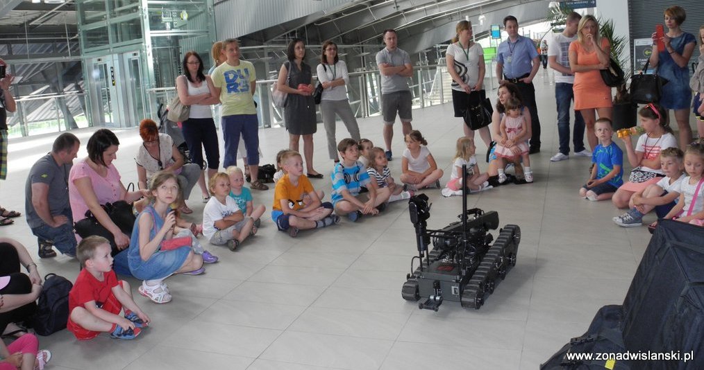 Po atrakcjach związanych z samolotami przyszedł czas na spotkanie z funkcjonariuszami Placówki Straży Granicznej, którzy jak zwykle stanęli na wysokości zadania i zaprezentowali: kolega Damian pokaz tresury psa służbowego – oraz kolega Michał – pirotechnik, który robotem pirotechnicznym zrobił ogromne wrażenie na dzieciach i dorosłych, których również nie zabrakło w tym dniu.
