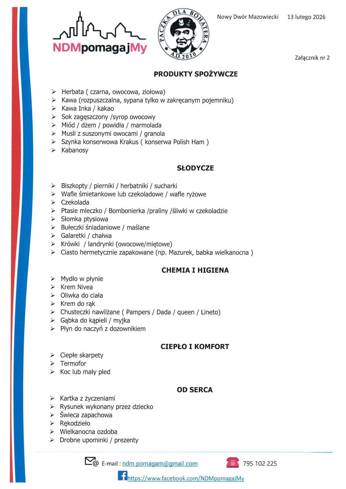 Zbieramy produkty żywnościowe i słodycze, aby wspólnie przekazać je warszawskim Weteranom i Kombatantom.