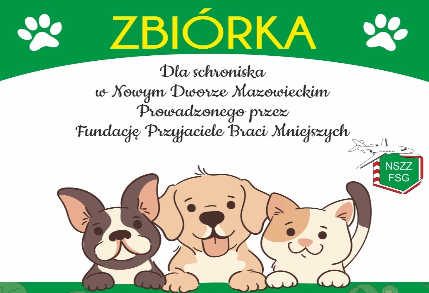 Pomoc dla porzuconych Braci Mniejszych jest niezbędna, zwłaszcza w okresie zimowym potrzebne są koce, maty, budy i karma w tym makaron (zbieramy również plastikowe nakrętki). Dary można przekazywać do przedstawicieli Zarządu Terenowego NSZZ FSG przy PSG Warszawa-Modlin lub przynosić do siedziby Zarządu Oddziałowego NSZZ FSG przy NwOSG.