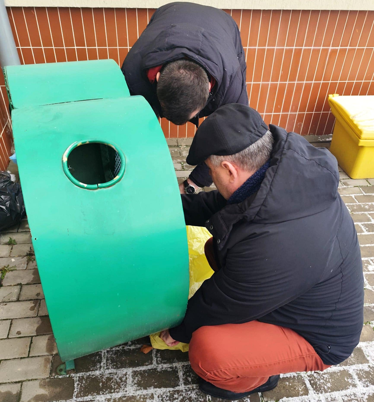 Pojemnik na nakrętki znajduje się przy wejściu do budynku nr 6.