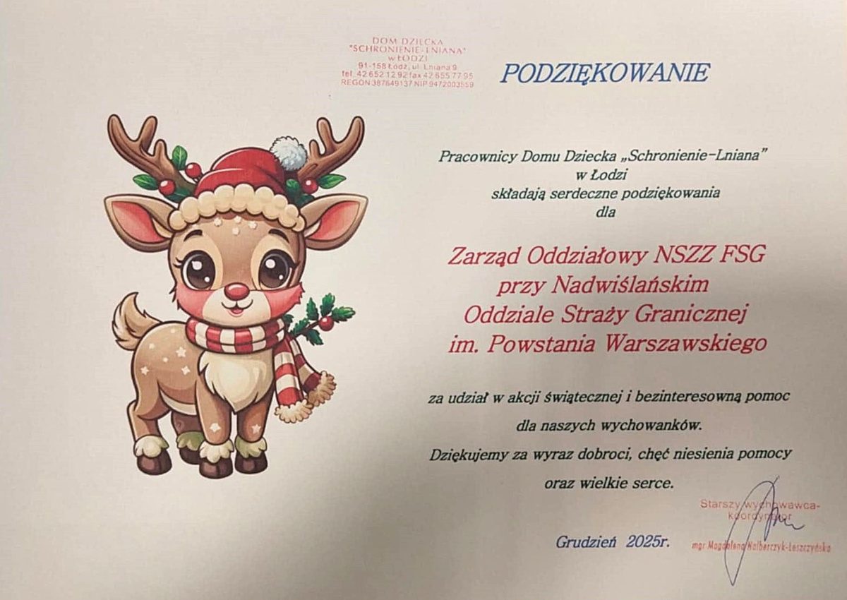 Działanie związkowców jest pięknym przykładem konsekwentnego budowania więzi ze społecznością lokalną, niesie radość potrzebującym oraz ma realny wpływ na kształtowanie wizerunku Straży Granicznej.